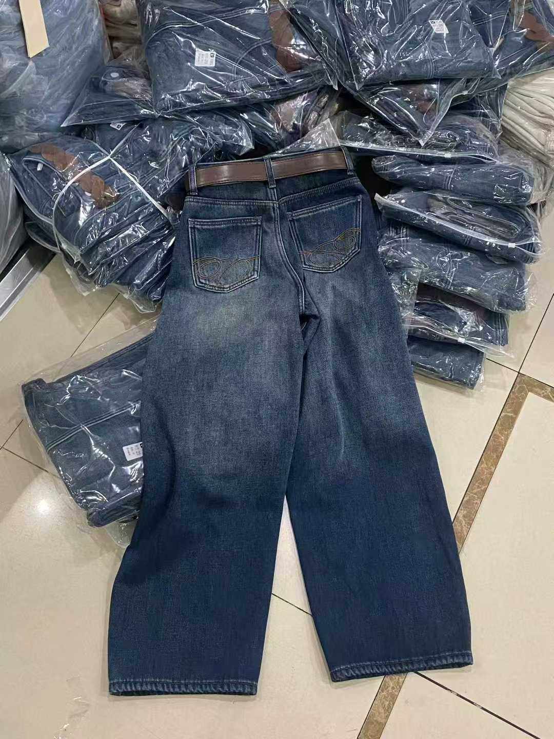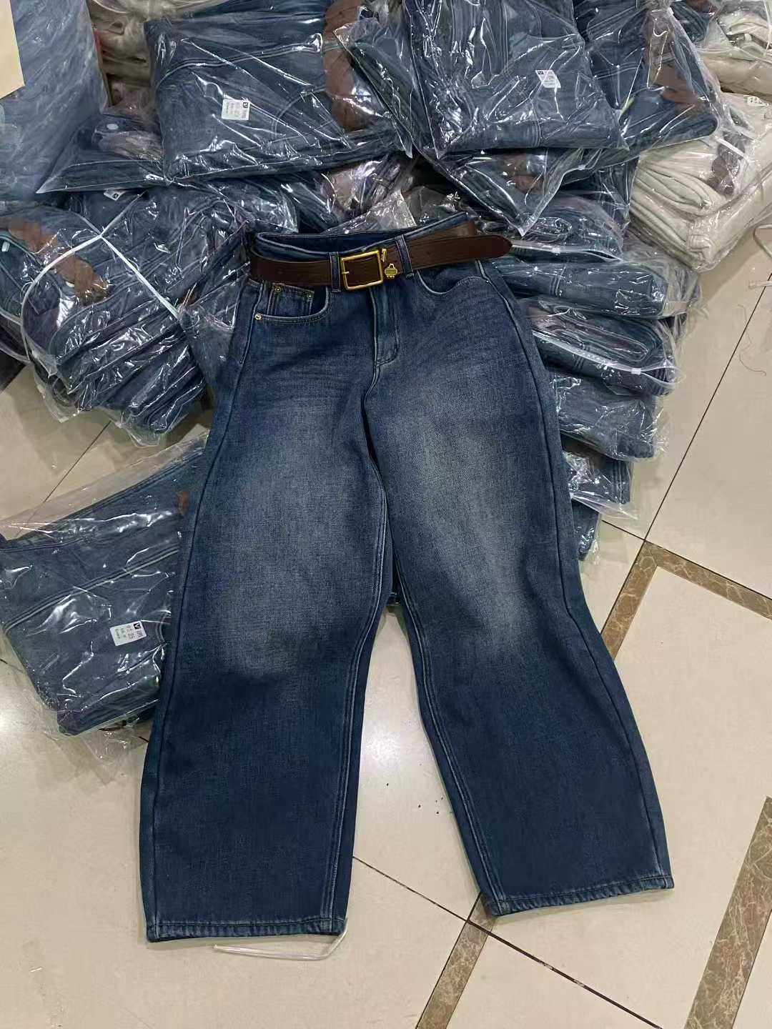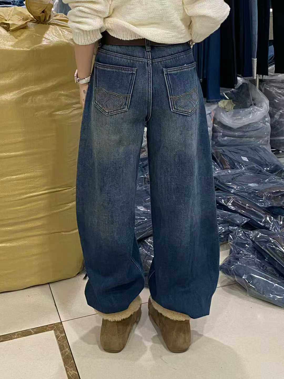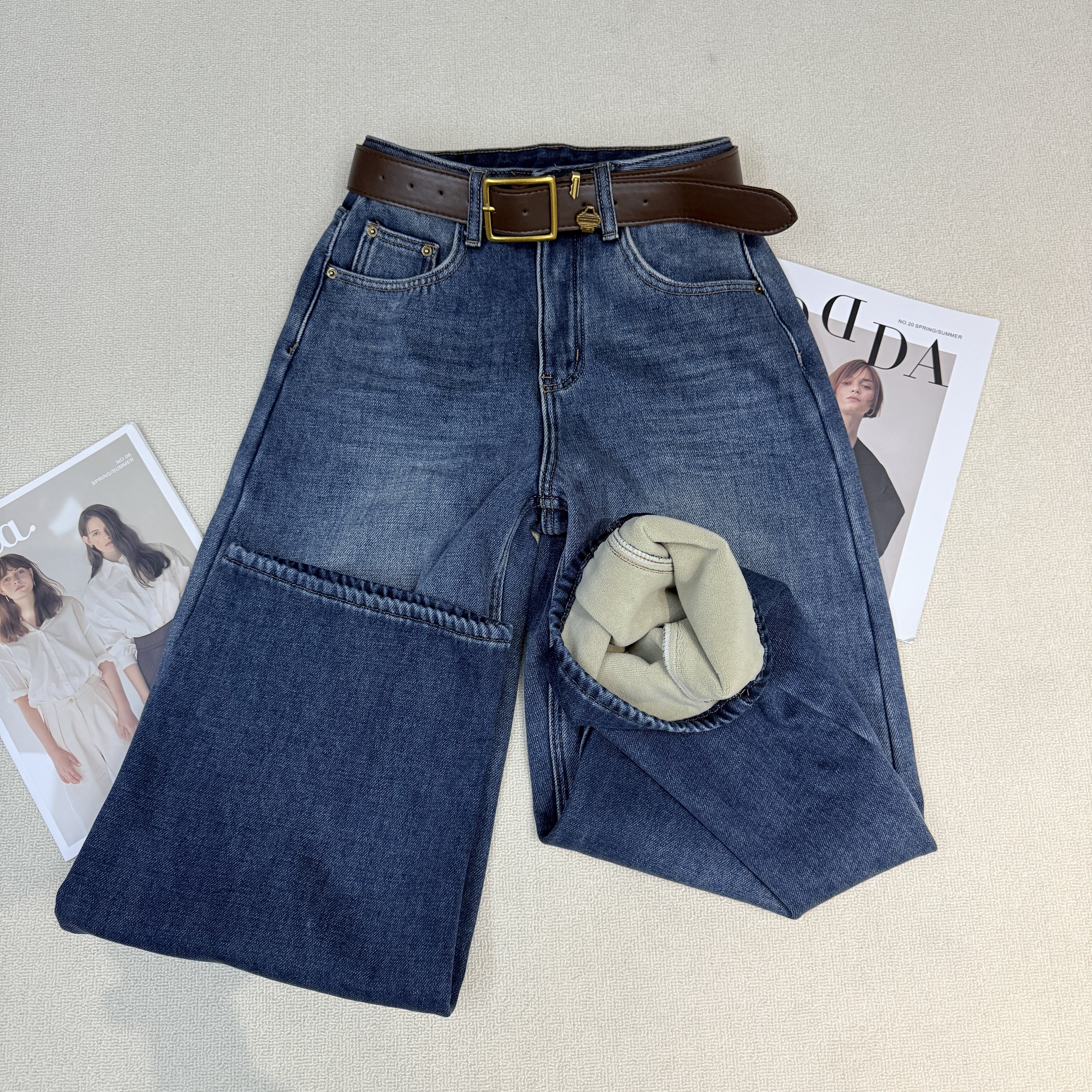 高腰牛仔蓝阔腿弯刀长裤 复合宝宝绒牛仔2025新款 99167冬季 JEANS