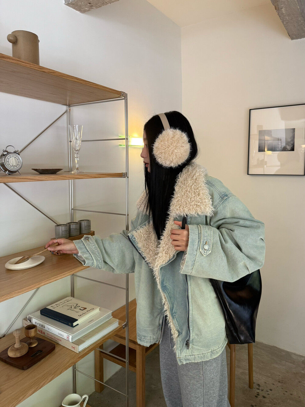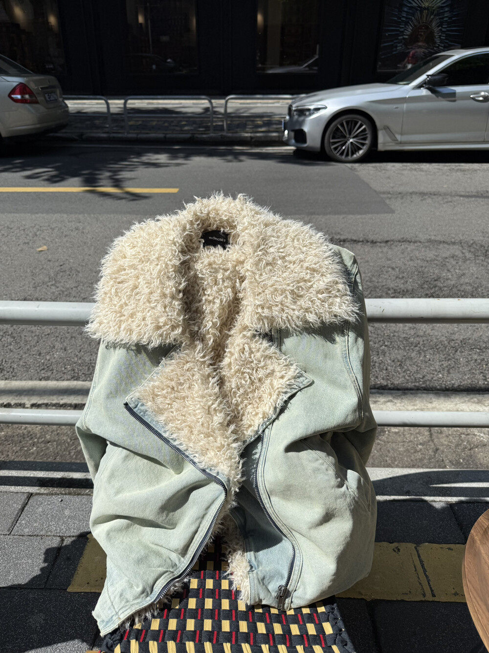 高级羊羔绒领外套 复古风夹克灯芯绒短款 eihey诶嘿韩版 柳智敏同款