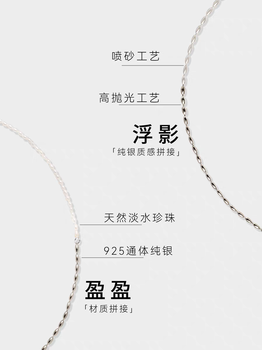 BIAS 浮影盈盈天然淡水珍珠米珠拼接项链925纯银简洁锁骨链 GUIDE