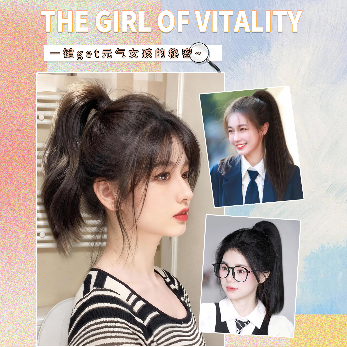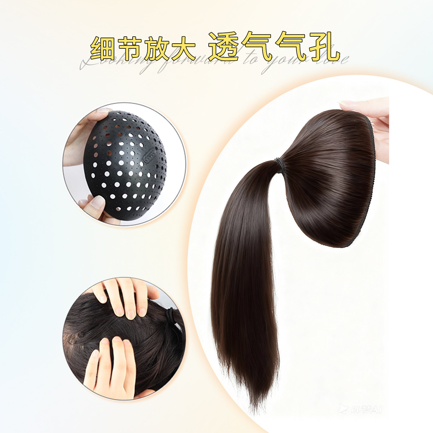 假发马尾女新中式 旗袍国风微卷低马尾 抓夹古风汉服假发辫子仿真式