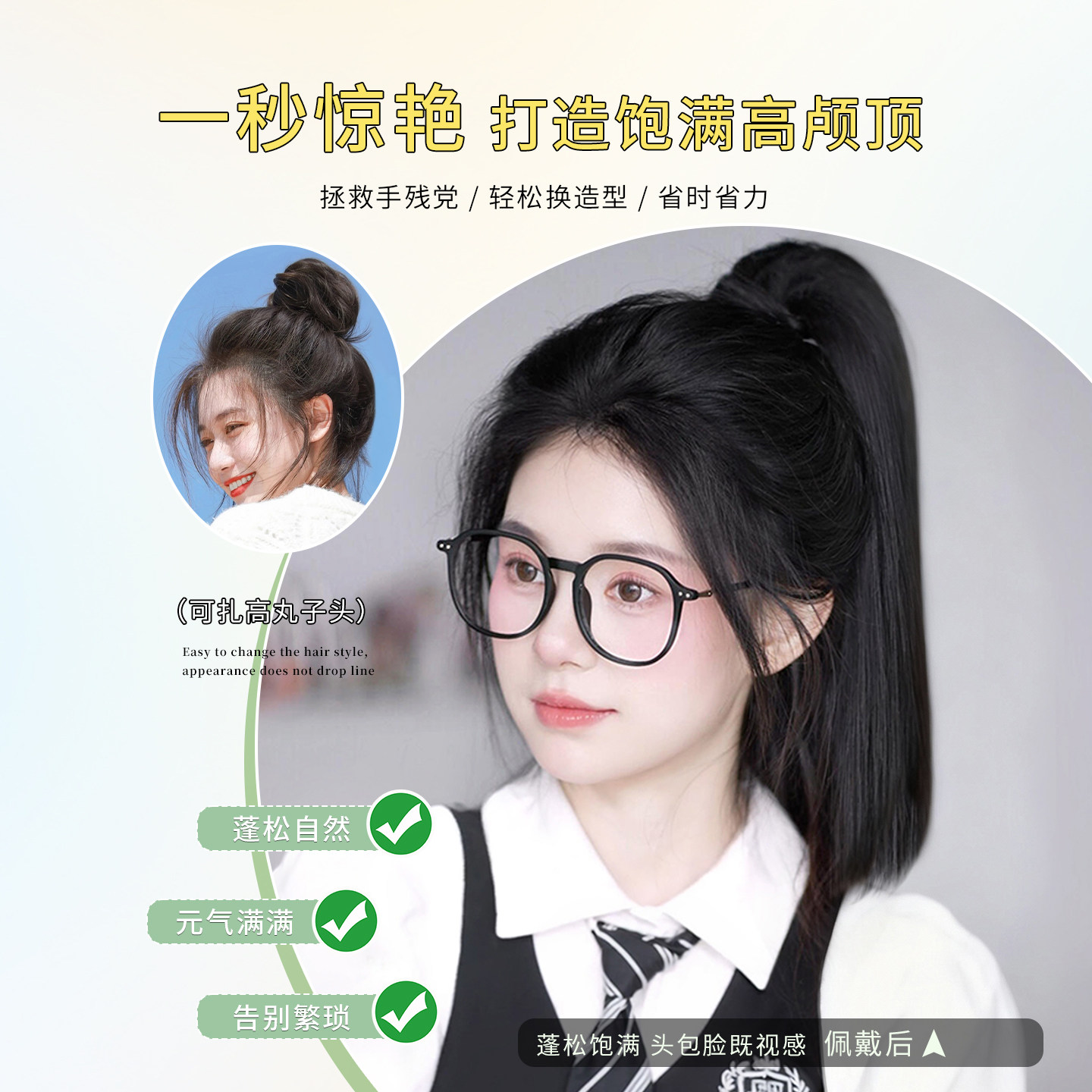 假发辫马尾丸子头假发抓夹新中式 双麻花长辫高马尾假发花苞头发饰