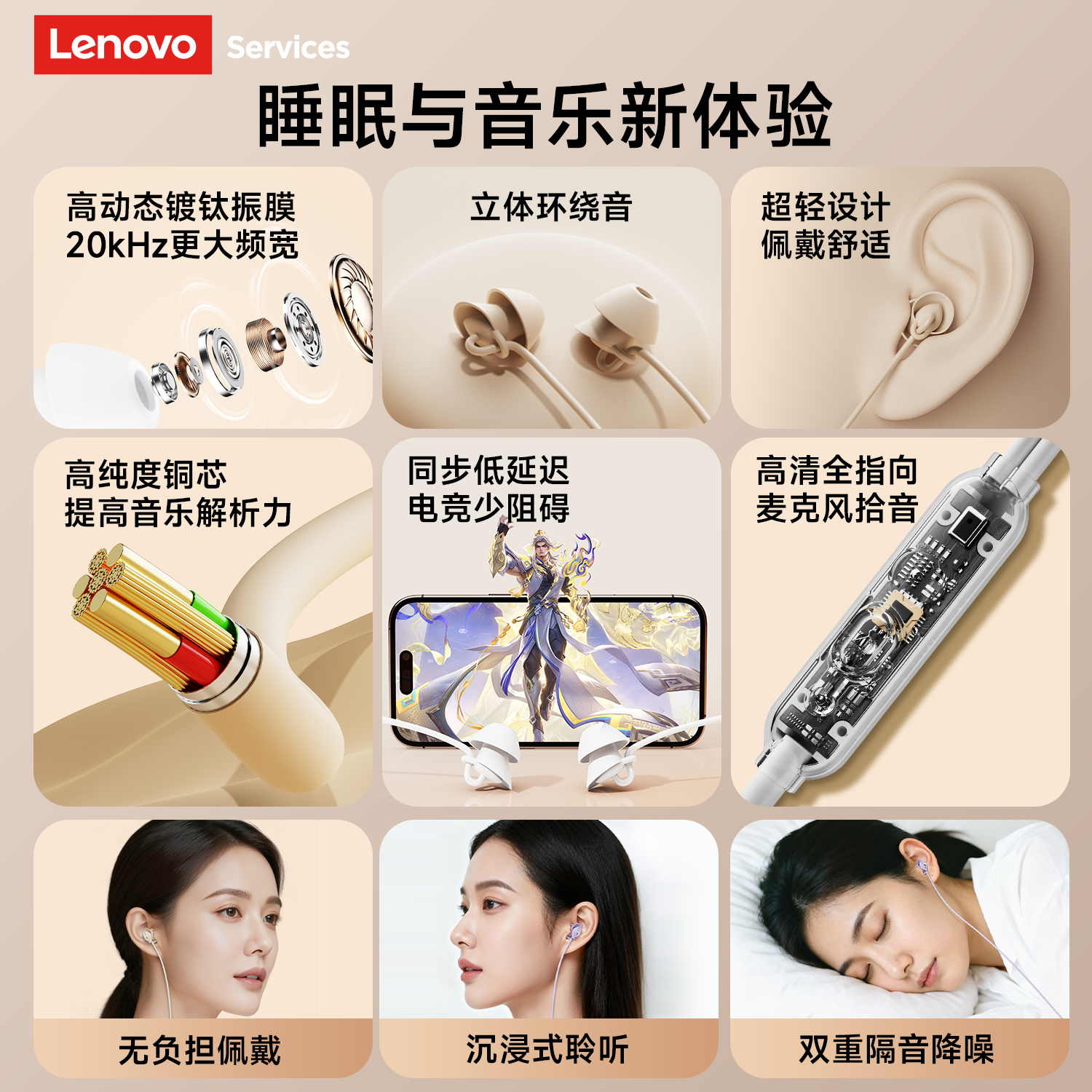 联想耳机有线typec接口asmr睡眠侧睡觉专用降噪入耳式 圆孔不压耳