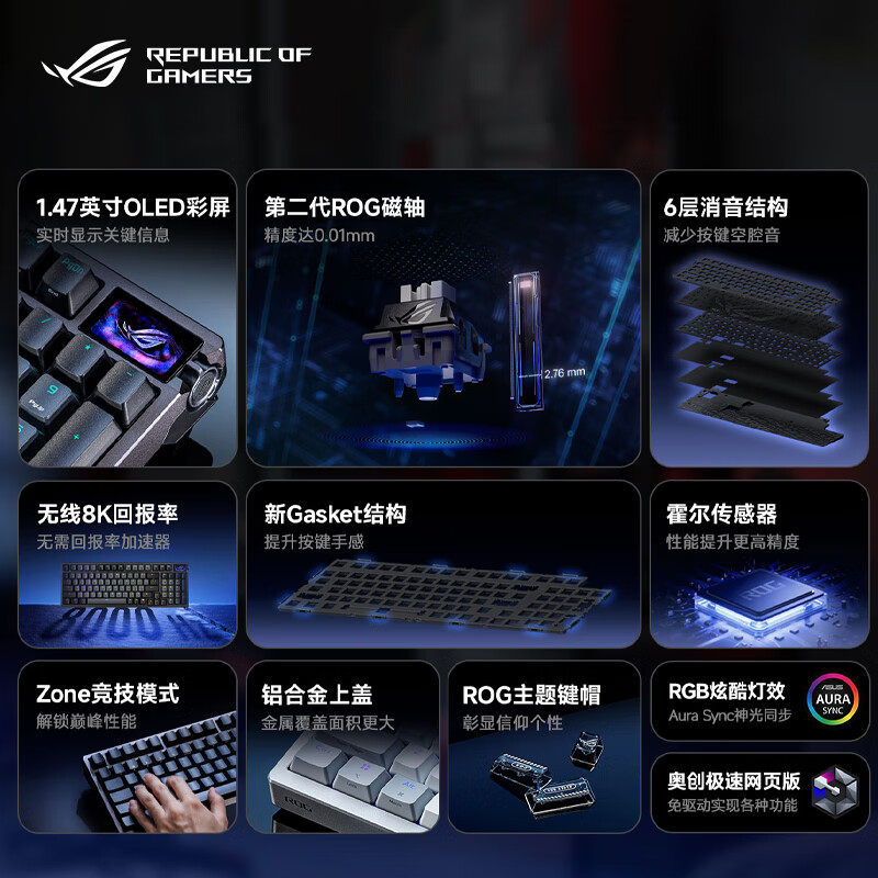 ROG夜魔98HE磁轴键盘无线游戏OLED彩屏8K回报率RT0.01电竞