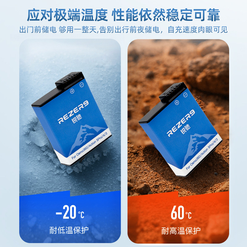 Osmo360全景电池耐低温长续航双充充电盒灵眸运动相机action4 适用DJI大疆Action6 3配件电池充电 5pro