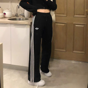 运动休闲宽松直筒卫裤 春秋男女高腰阔腿长裤 品牌折扣 奥莱专区