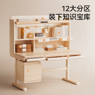 爱果乐儿童学习桌小学生家用写字桌子实木可升降书桌咖啡猫至臻