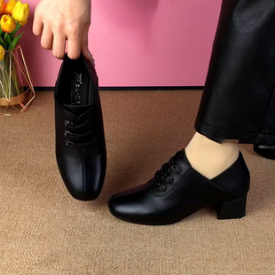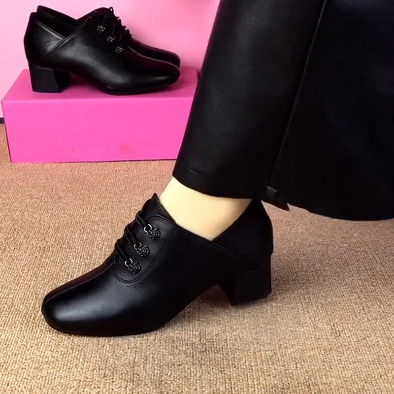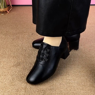 中年妈妈鞋 黑色粗跟单鞋 2025新款 跳舞软底工作鞋 女 春季 品牌小皮鞋