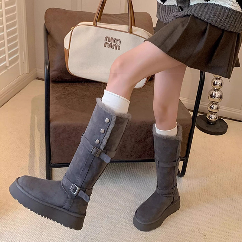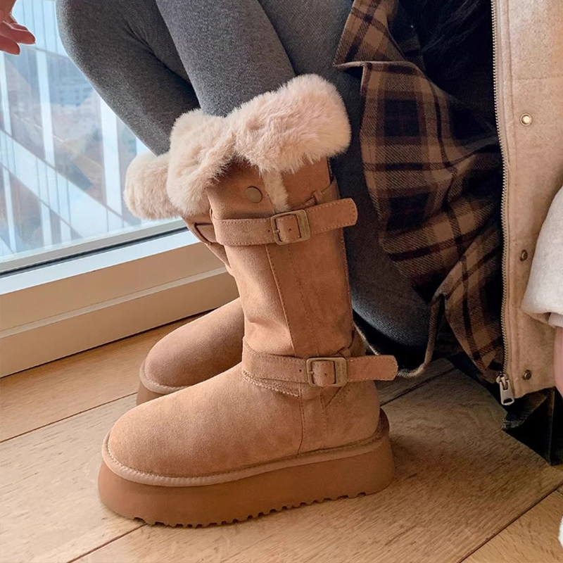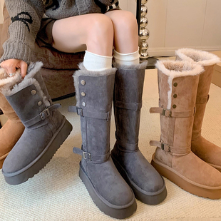 厚底保暖中长筒雪地棉靴棉鞋 新款 2025冬季 高筒加绒加厚雪地靴女款