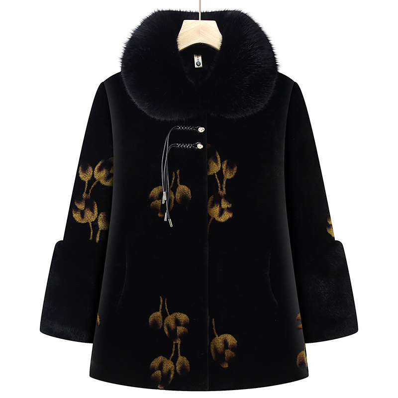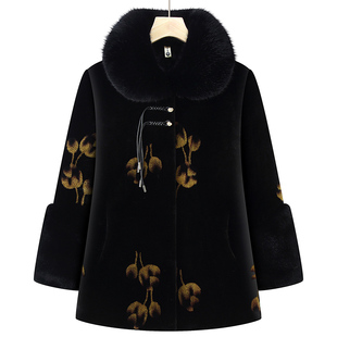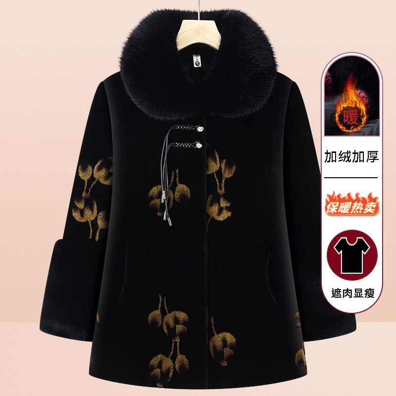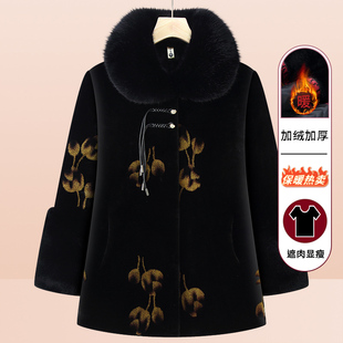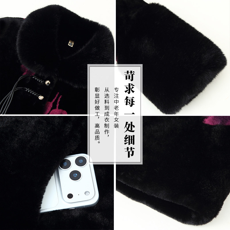 妈妈水貂绒衣服老太太加绒上衣 新款 中老年人冬装 女大衣洋气奶奶装