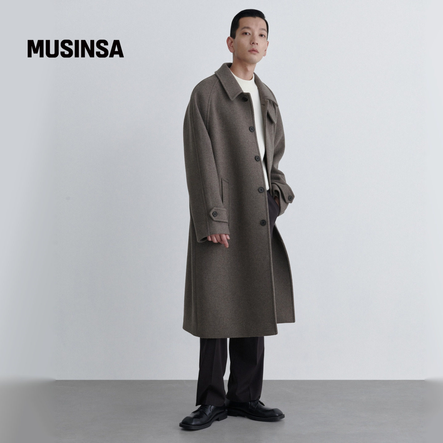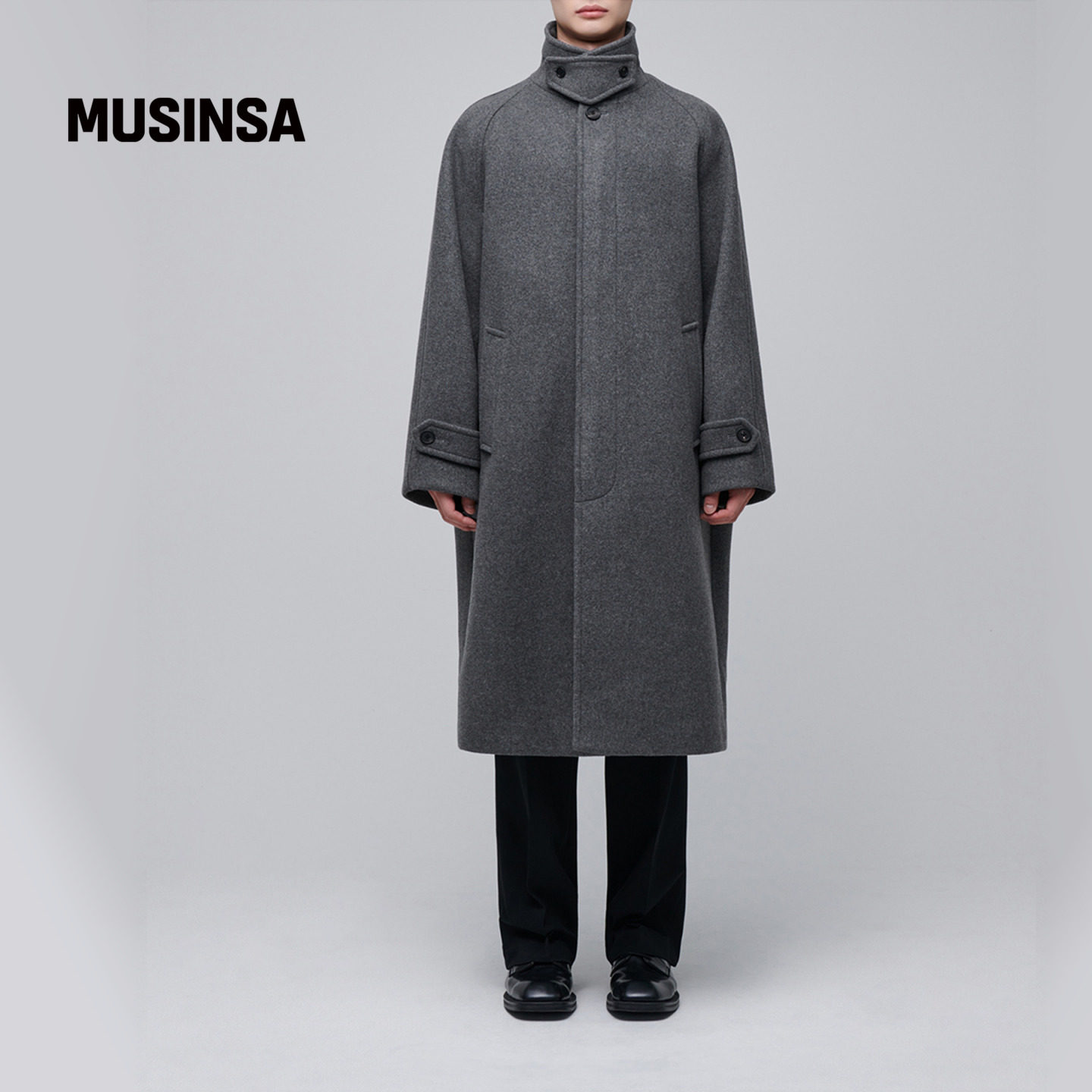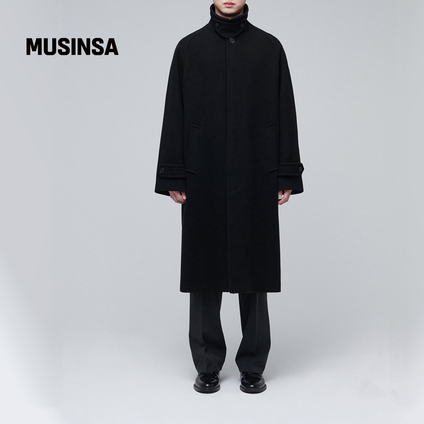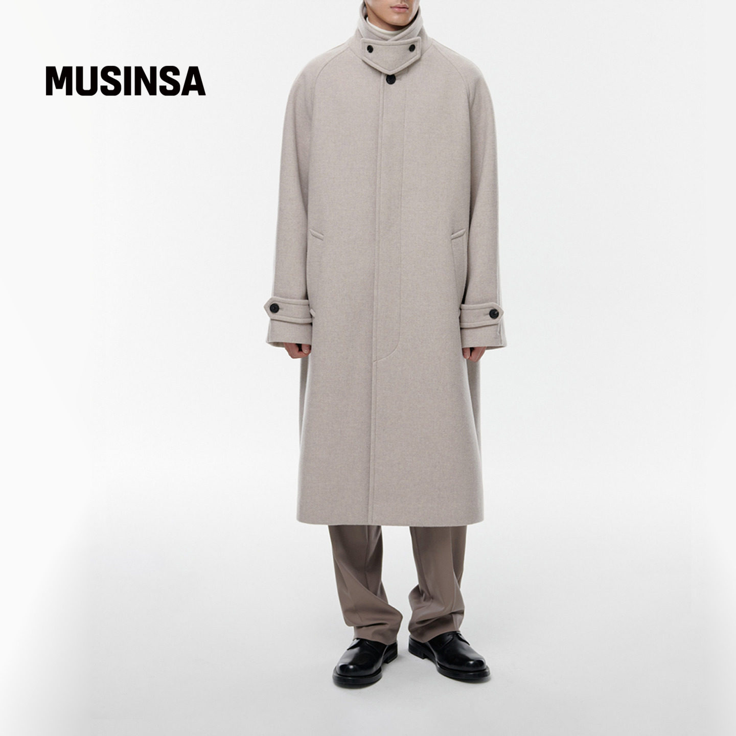 过膝无羊绒呢子风衣外套韩版 毛呢大衣男中长款 宽松落肩 新款 秋冬季