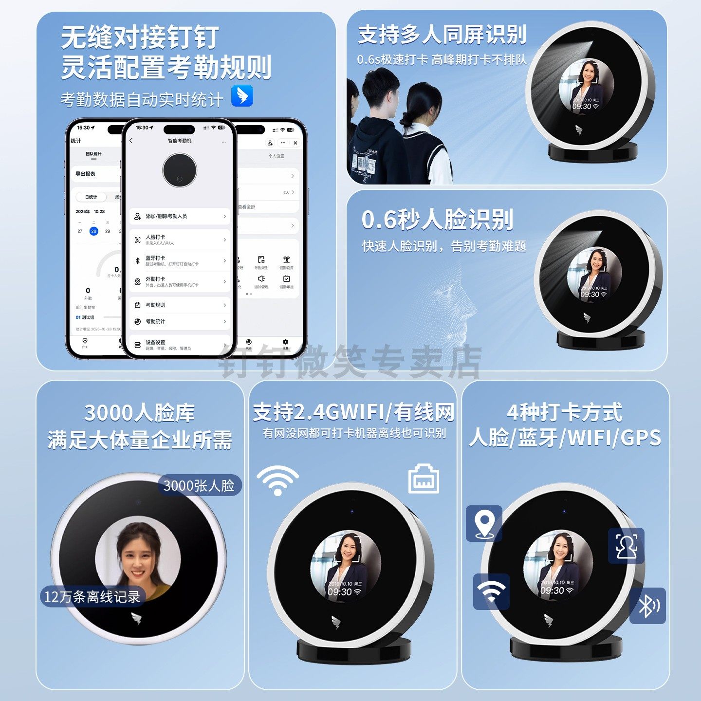 钉钉考勤机M1Xpro智能人脸识别钉钉打卡机WiFi蓝牙签到多地多店统一管理云考勤员工上下班刷脸签到打卡考勤机