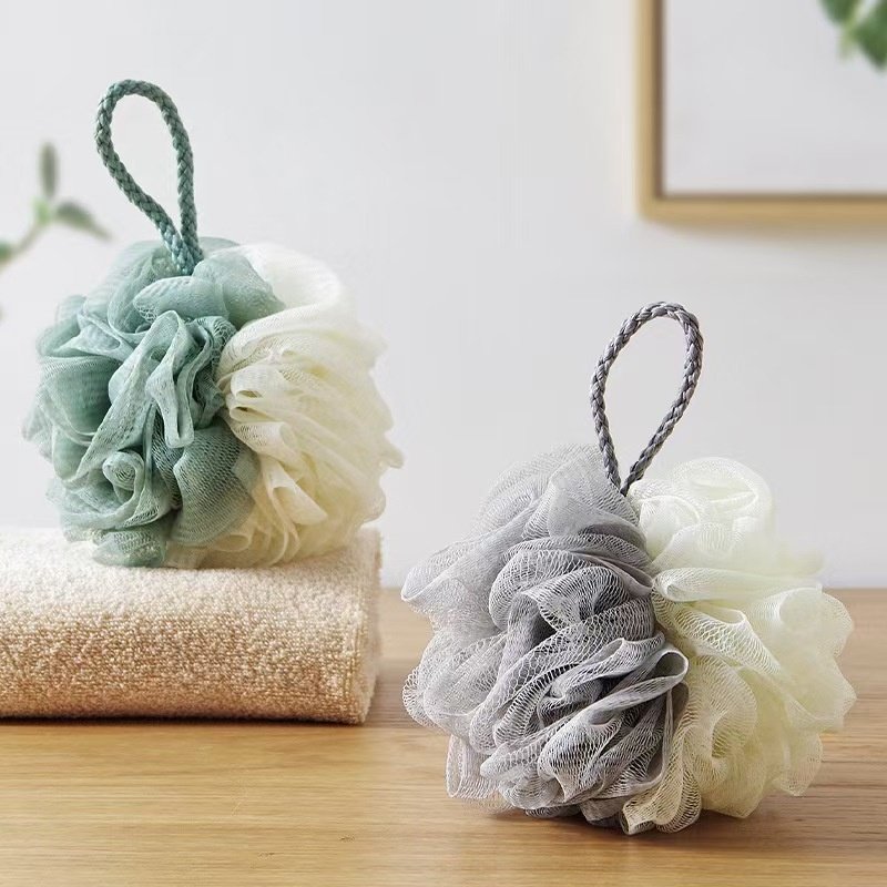 双色拼接沐浴球家用带挂绳撞色加厚柔软浴花搓背用丰富起泡洗澡球