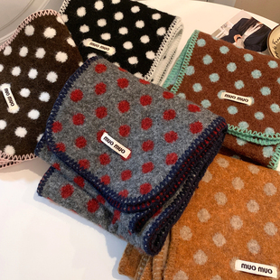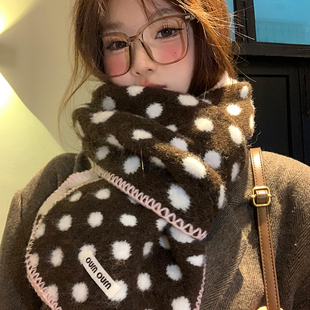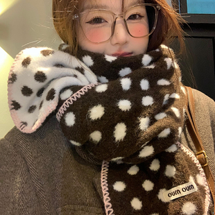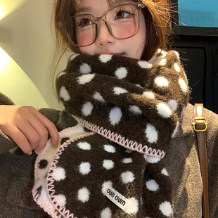 双面波点针织毛绒围巾女秋冬氛围感加厚保暖学生防寒韩系围脖护颈
