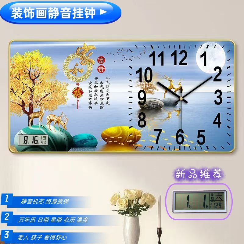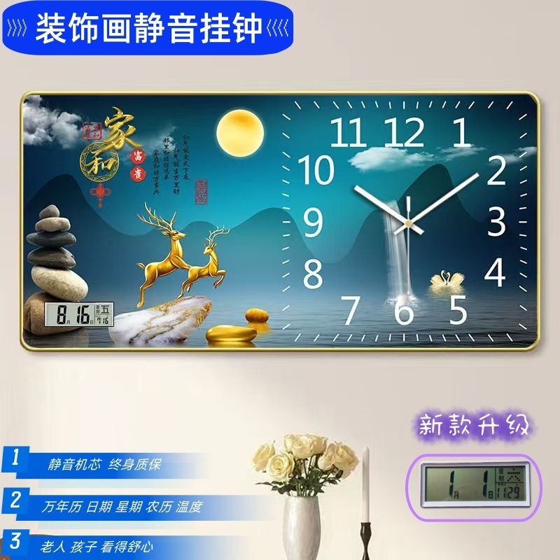 钟表 饰画挂钟家用石英钟超静音日历家和万事兴餐厅新中式 新款 装