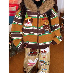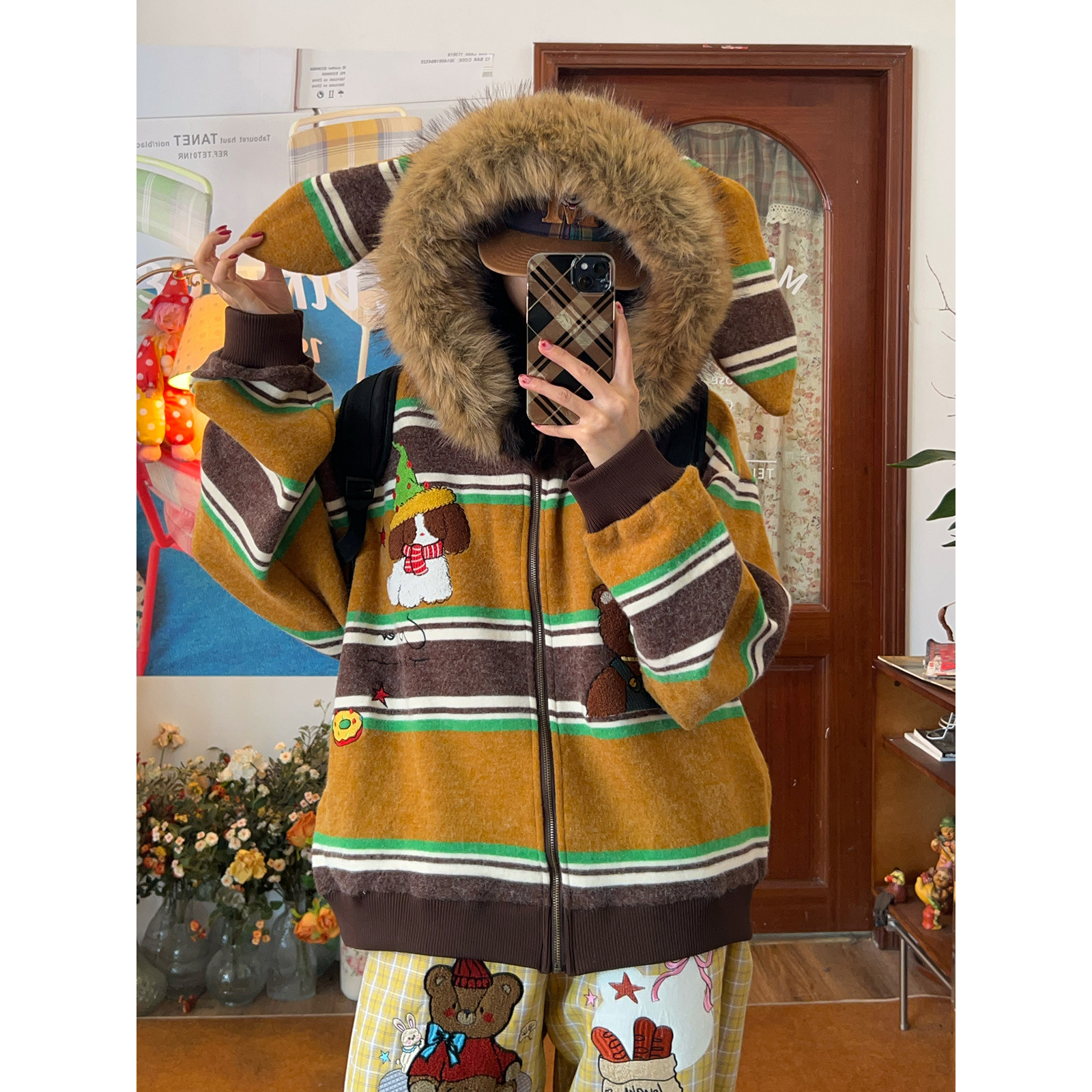 宽松连帽毛绒棉服女保暖加厚独特漂亮小棉袄外套 胖mm韩版 大码 女装