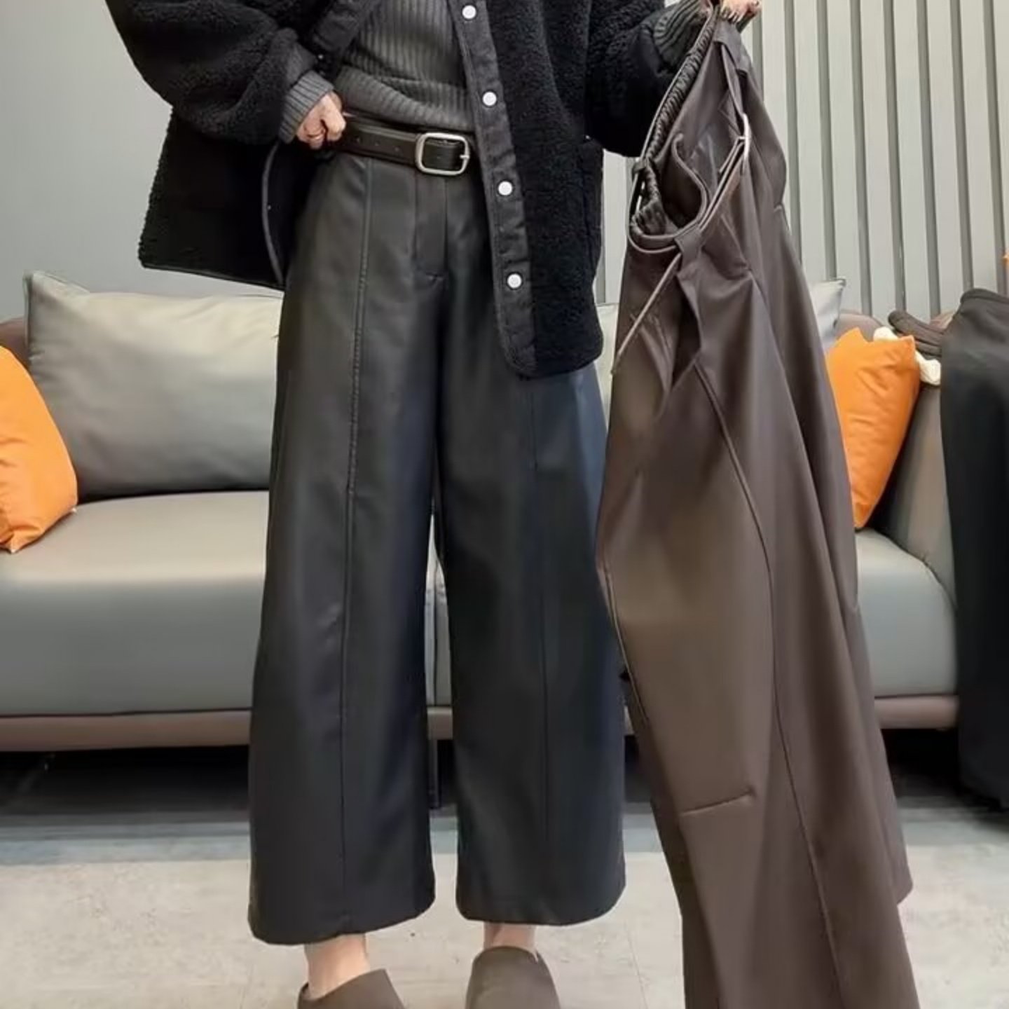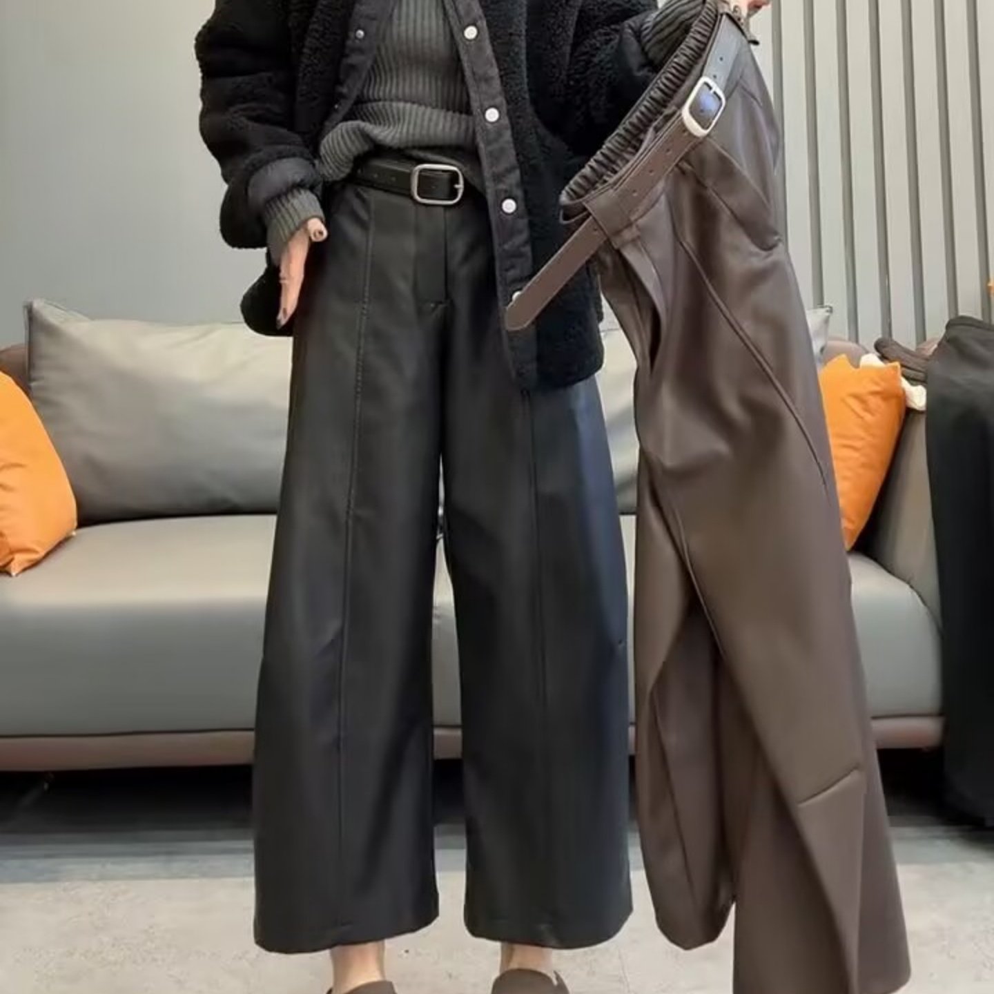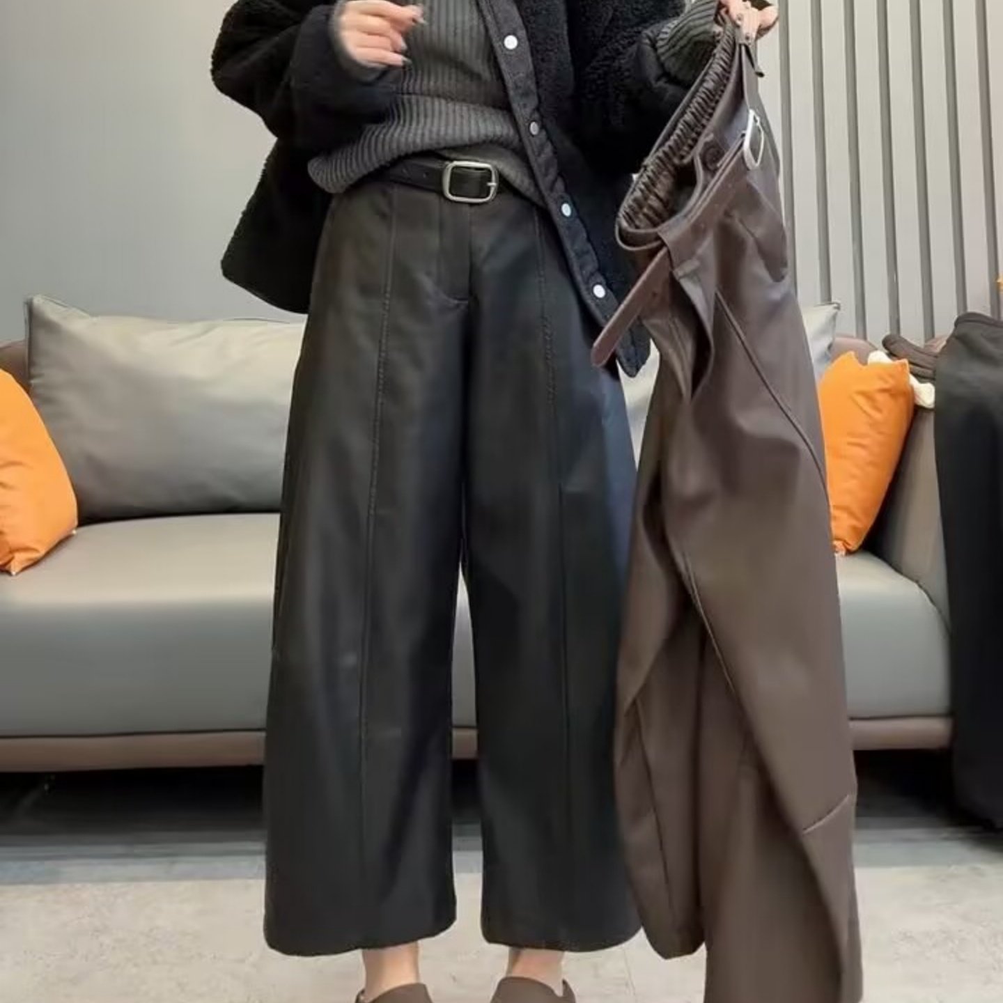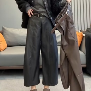 百搭洋气靴裤 九分阔腿弯刀裤 线条设计感加绒加厚蛋白皮裤 欧货皮裤