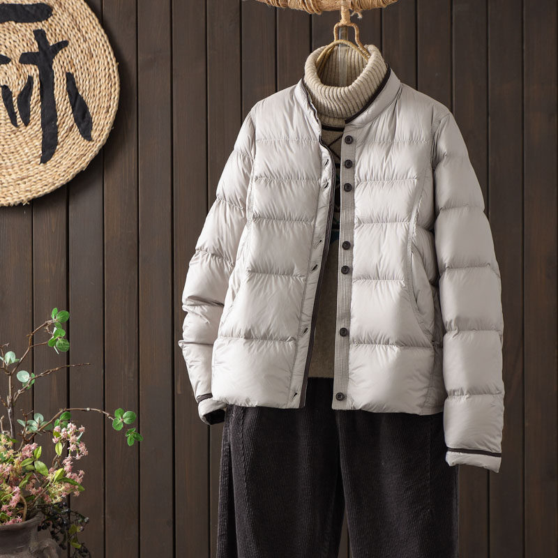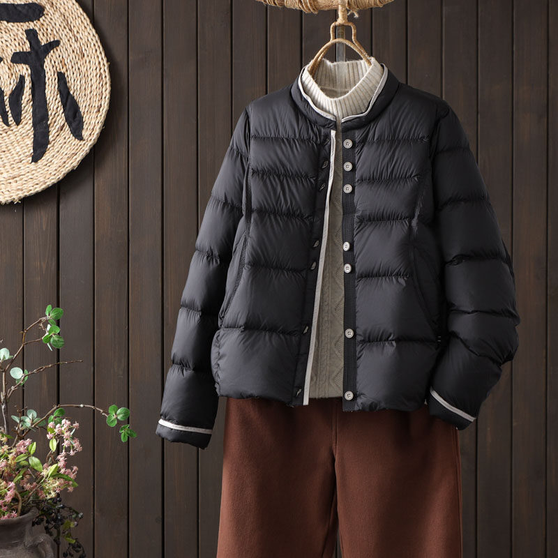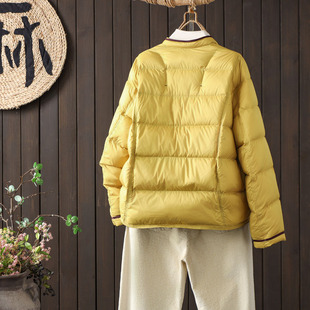 减龄外套 圆领90白鸭绒轻薄羽绒服女秋冬单排扣时尚 2025年新款 韩版