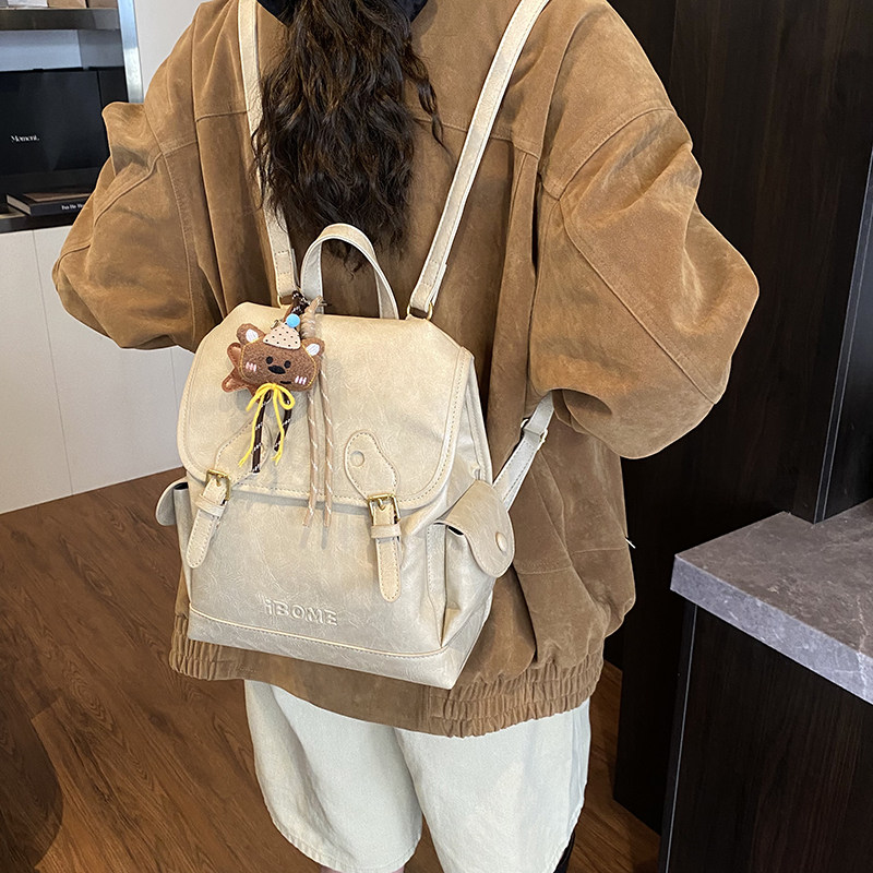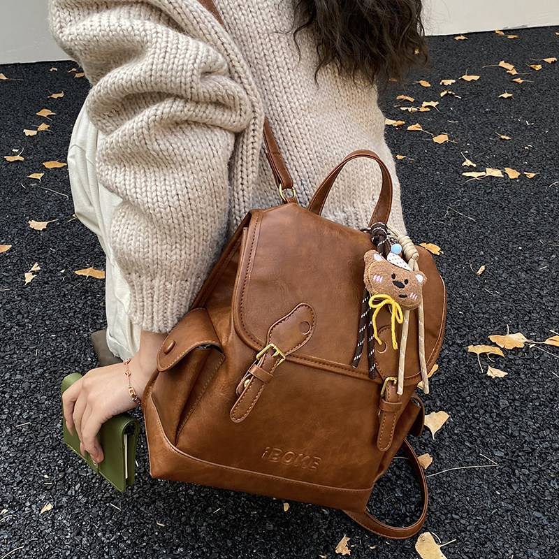 小众设计囧字双肩包女冬季 复古翻盖背包卡通可爱熊猫眼小书包 新款