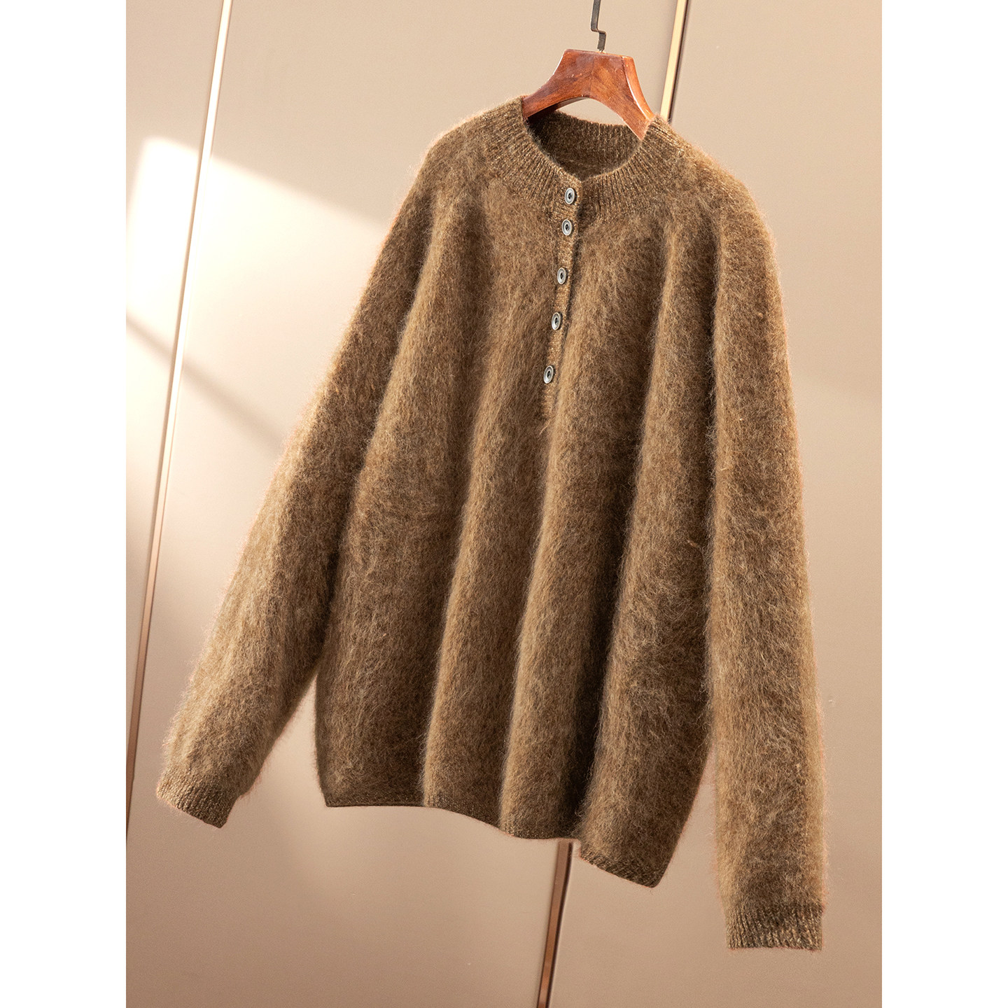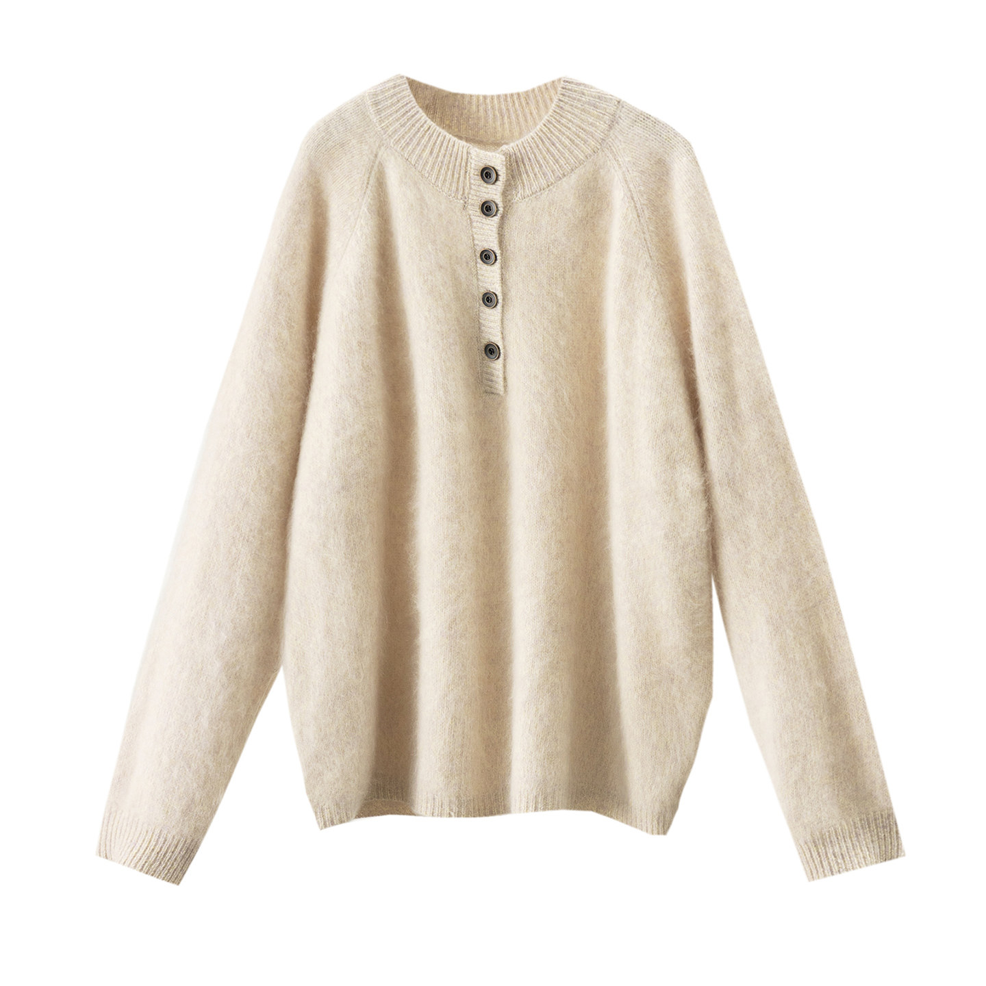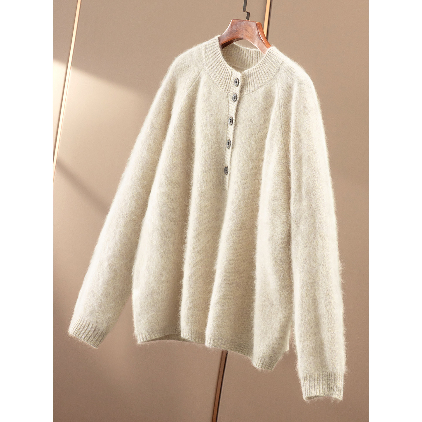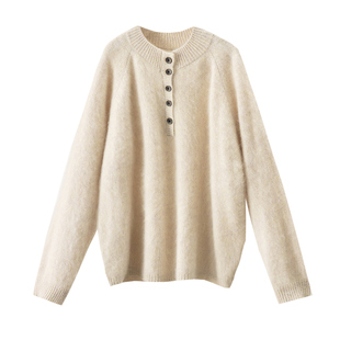 针织打底衫 品牌高级感羊毛衫 女半高领宽松毛衣秋冬加厚羊绒长袖