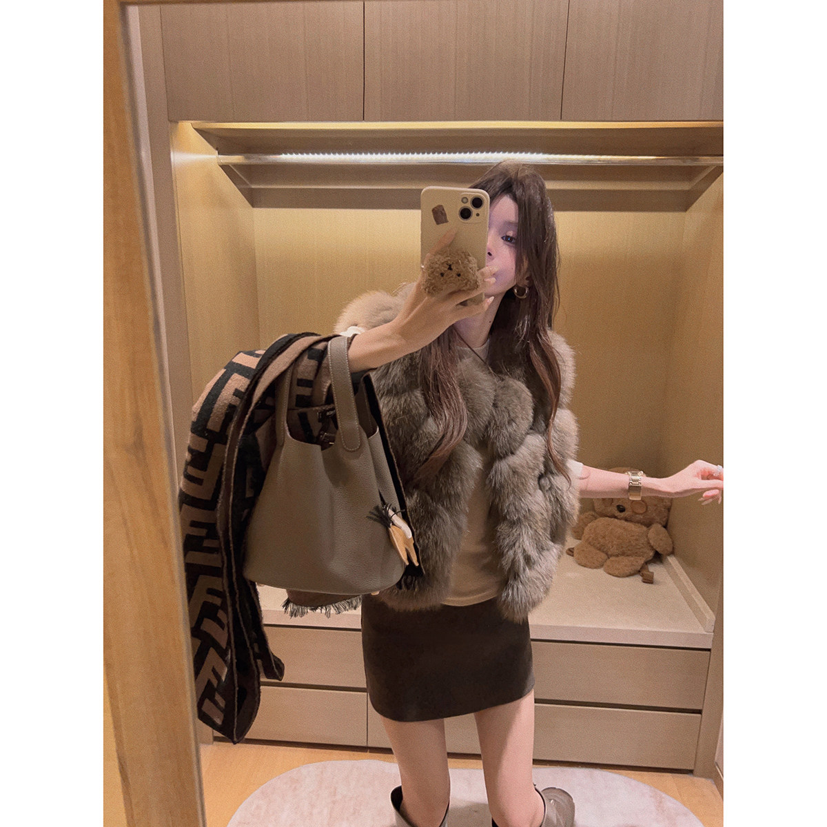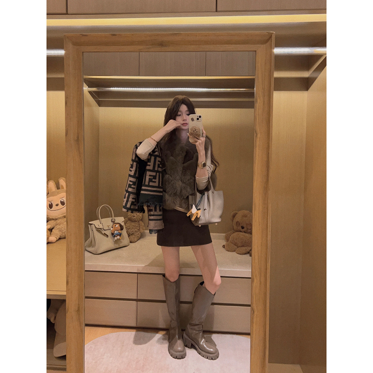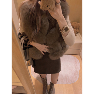 开叉醋酸毛呢半身裙女秋冬绵羊毛直筒裙中长款 棕色加绒加厚一步裙