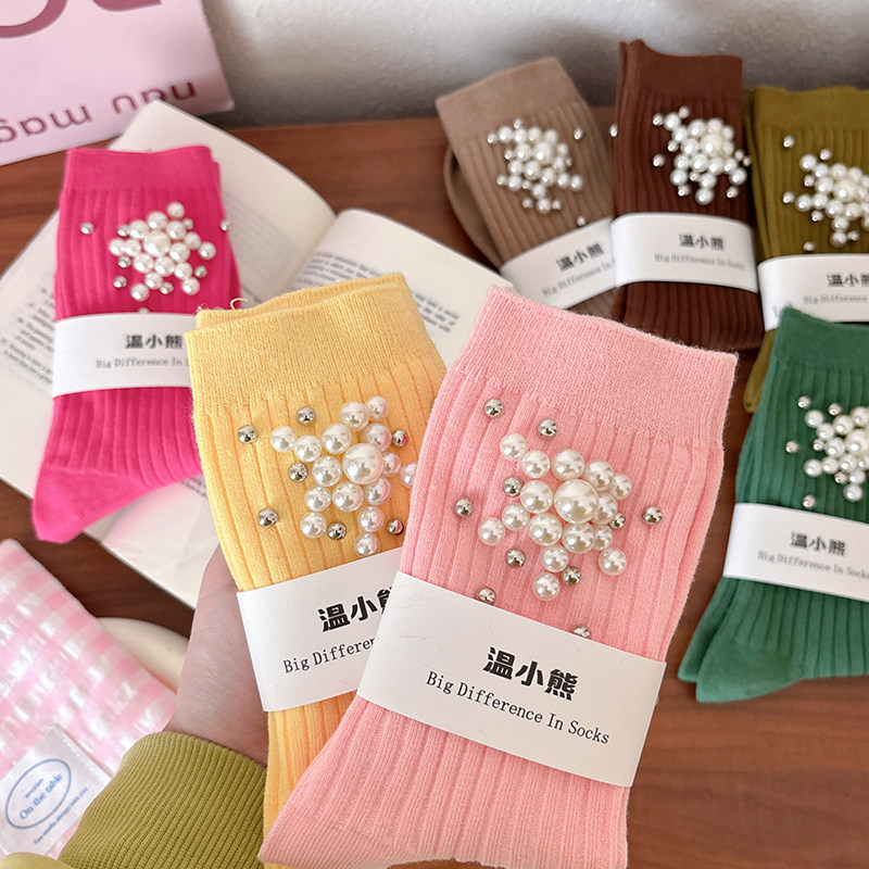 韩版 防臭吸汗休闲竖条纹堆堆月子袜纯糖果色 女士中筒长袜子春秋款