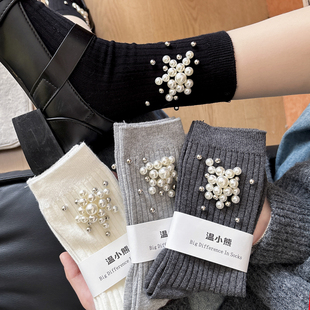 羊毛袜子女冬季 超厚中筒袜加绒加厚保暖棉袜睡眠条纹羊绒月子长袜
