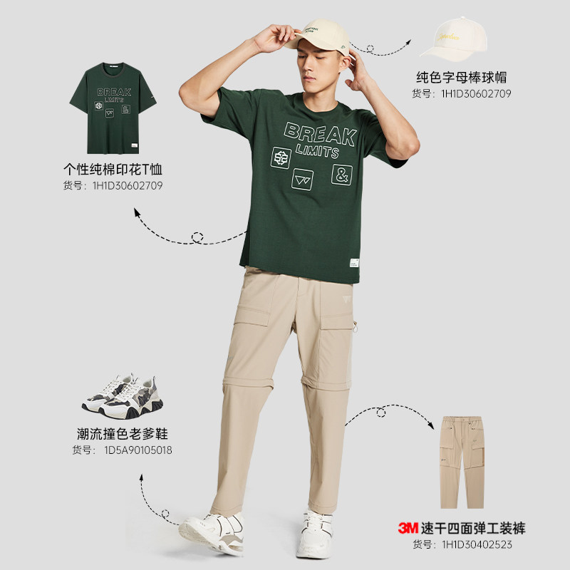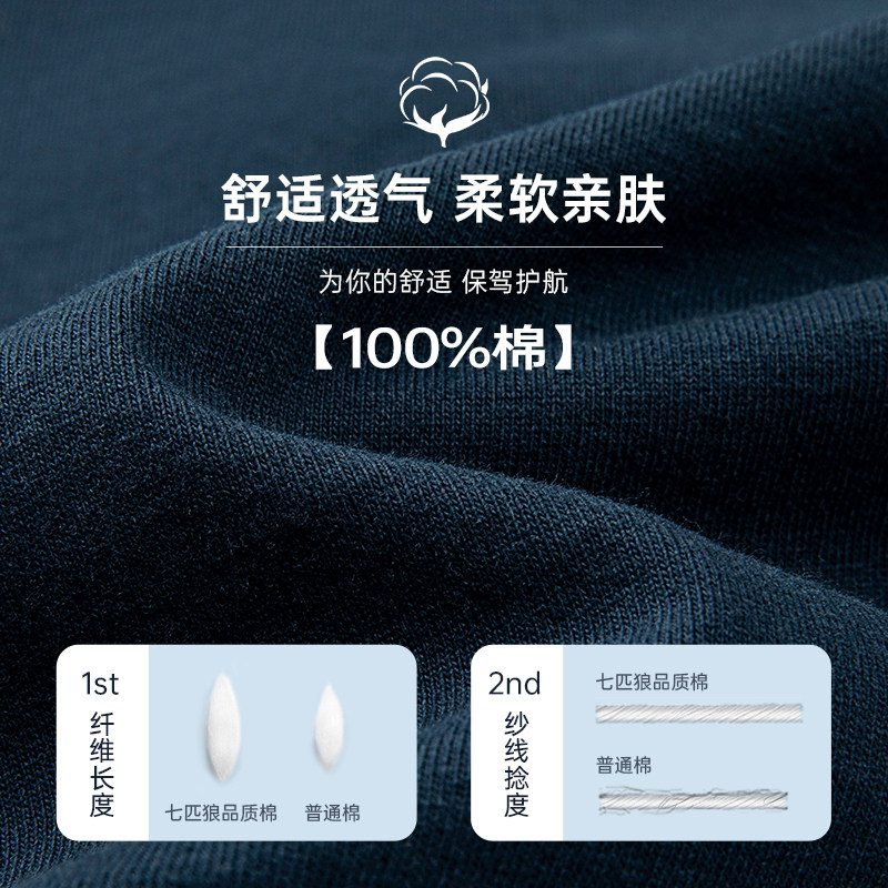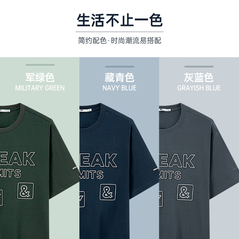 100%棉 新款 七匹狼官方正品 T恤吸湿透气夏季 印花上衣男 圆领短袖