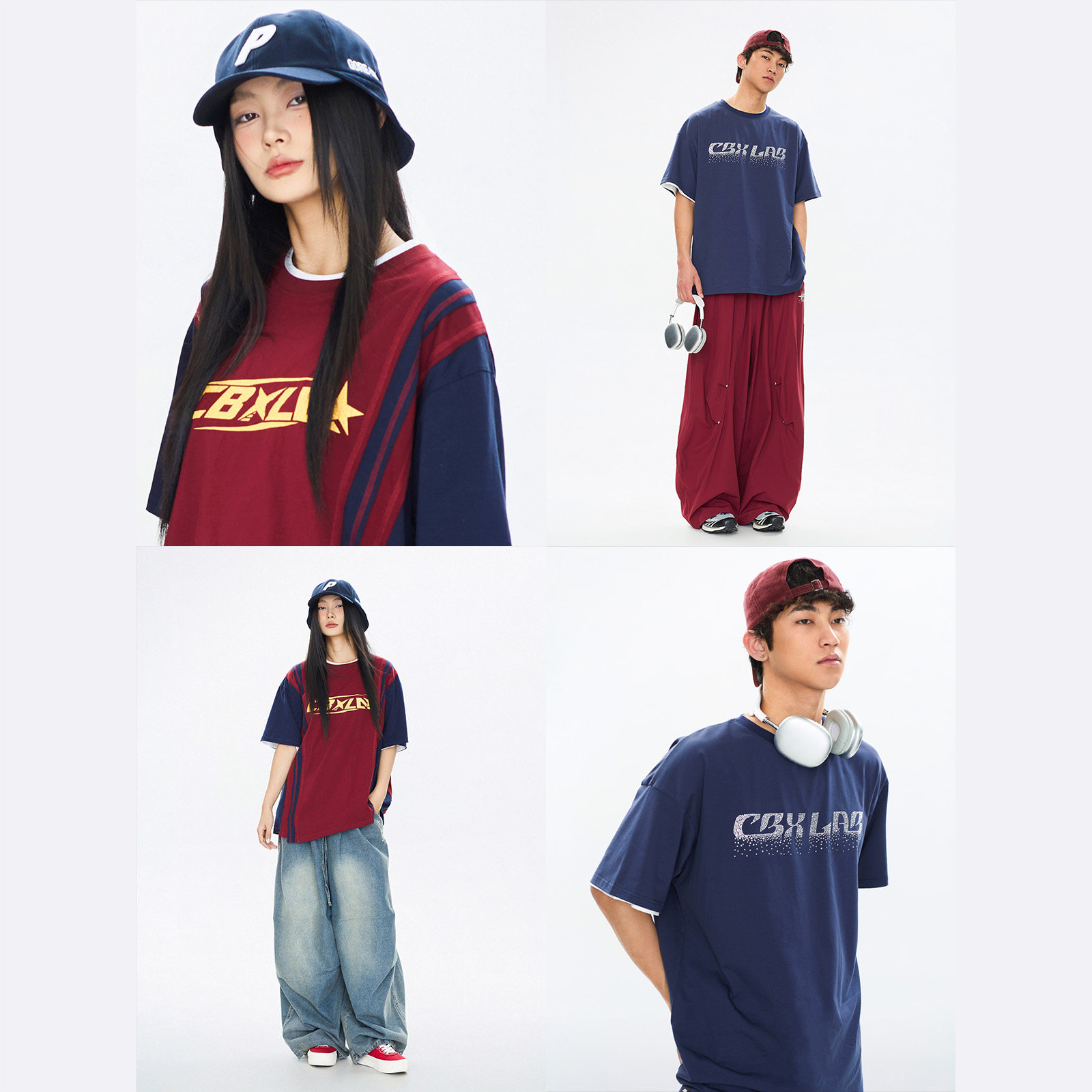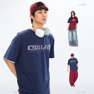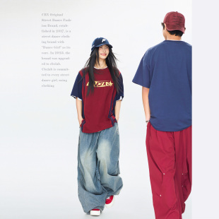 CBXLAB街舞潮牌美式 上衣潮 撞色嘻哈跳舞T恤复古运动情侣街头短袖
