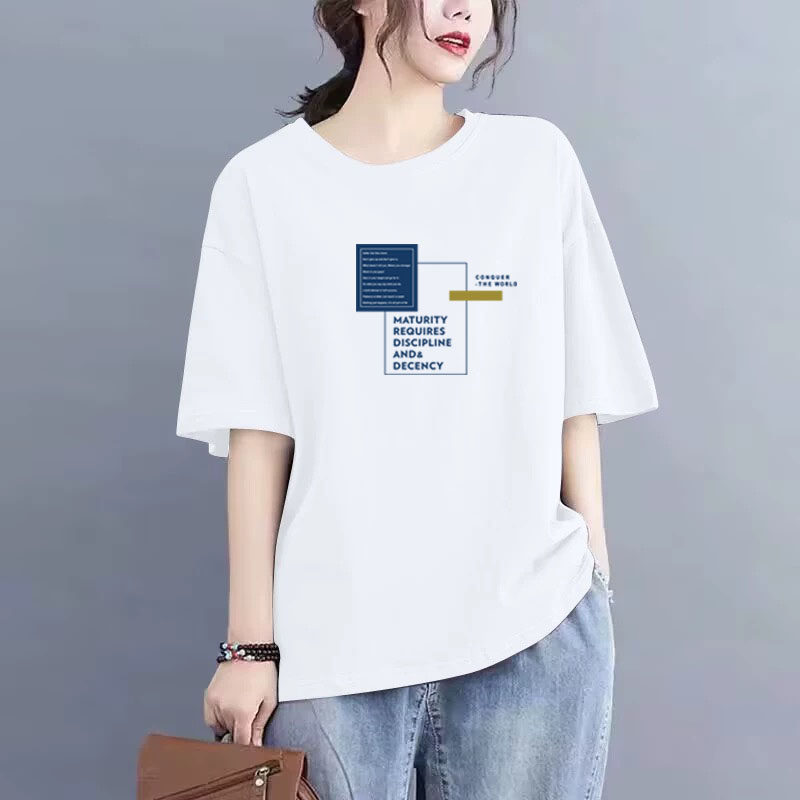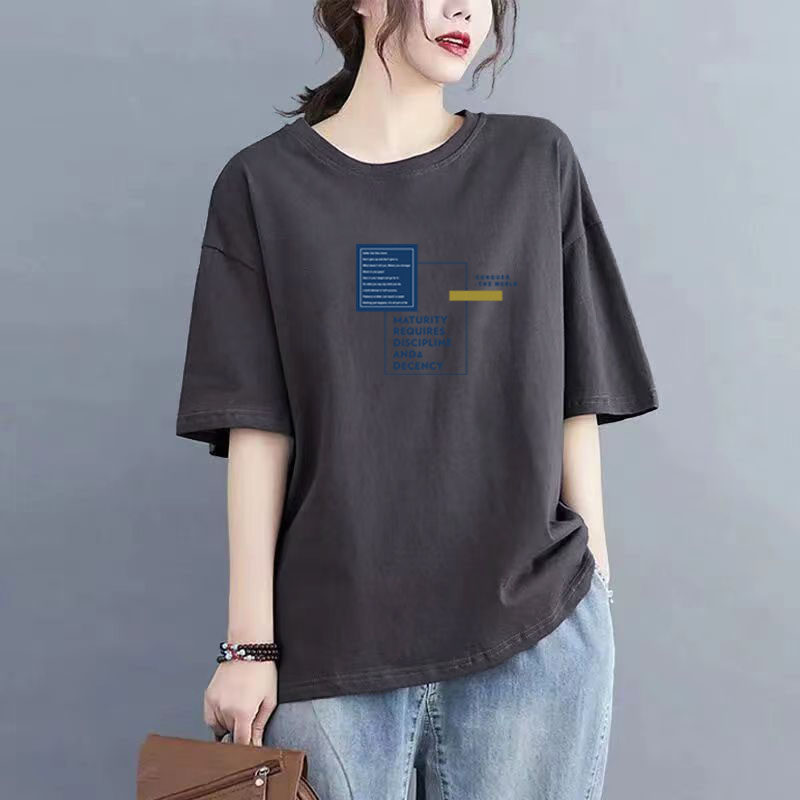字母印花上衣 t恤女夏宽松内搭时尚 外贸原单出口女装 纯棉休闲短袖