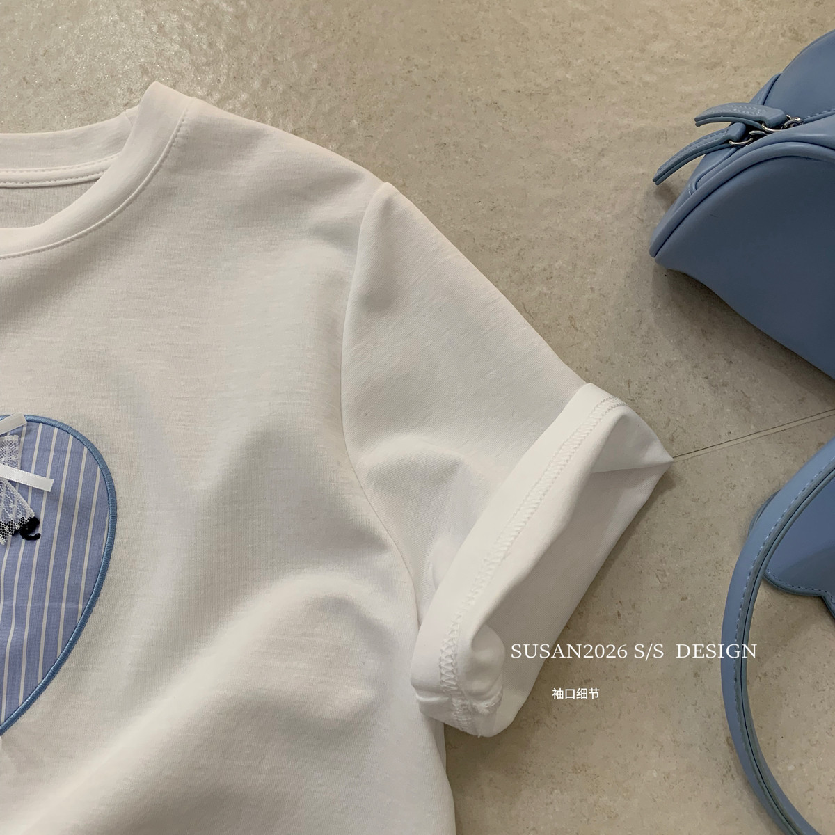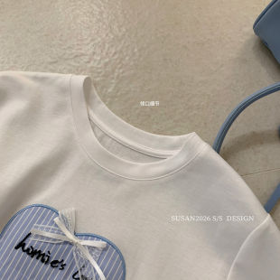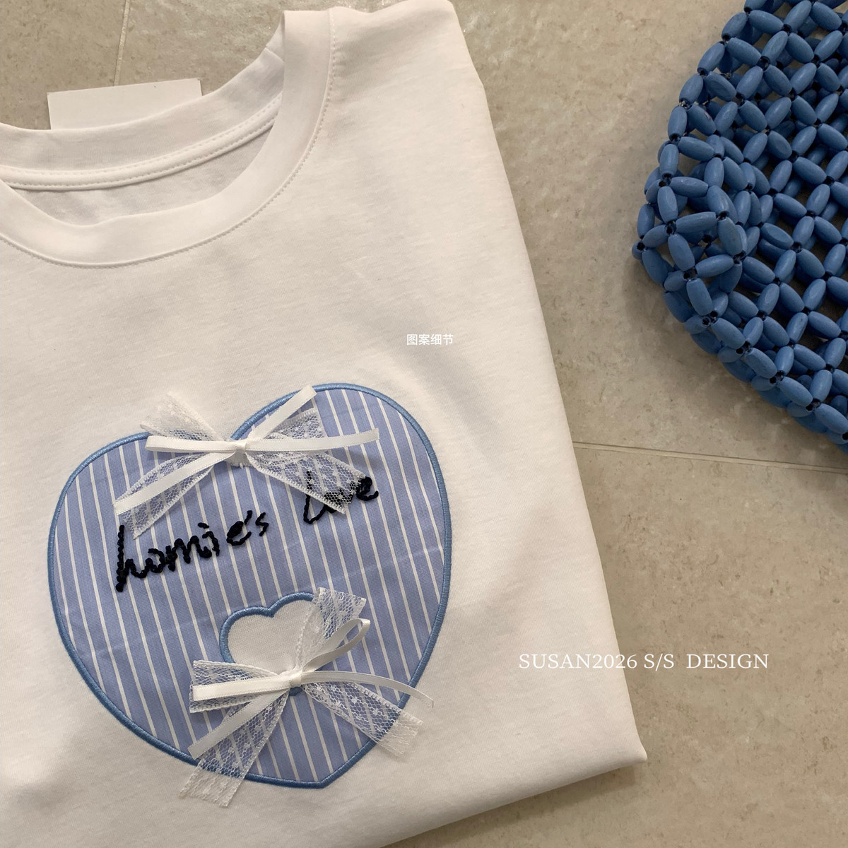 SUSAN T恤MT311 26年早春韩系爱心贴花立体蝴蝶结短袖