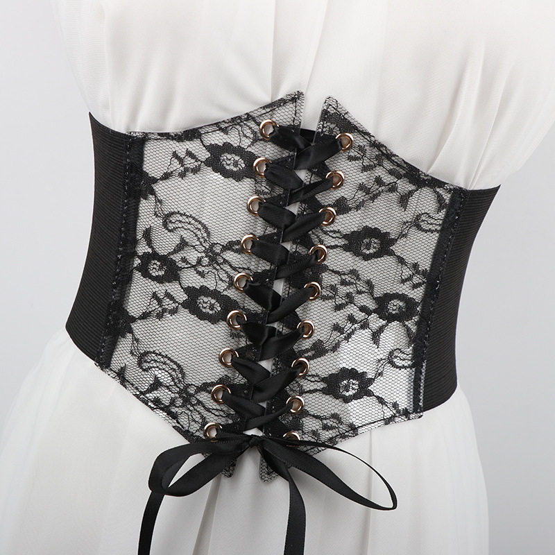 透明蕾丝腰封配连衣裙束腰外穿裙子配饰紫色宽腰带装 Lolita 饰衬衫