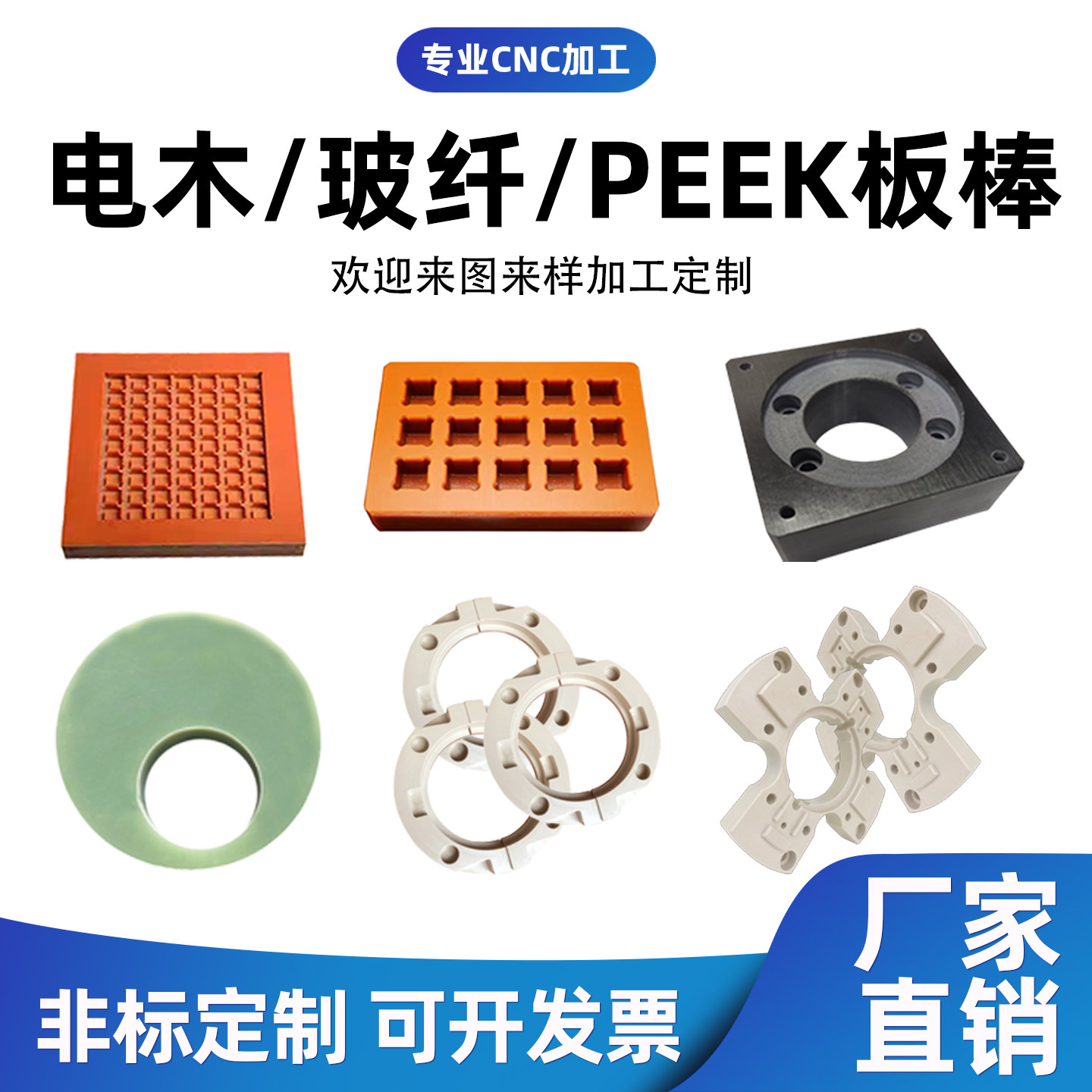 PEEK板电木板FR4玻纤板G10板加工聚醚醚酮棒绝缘板耐高温防静电板