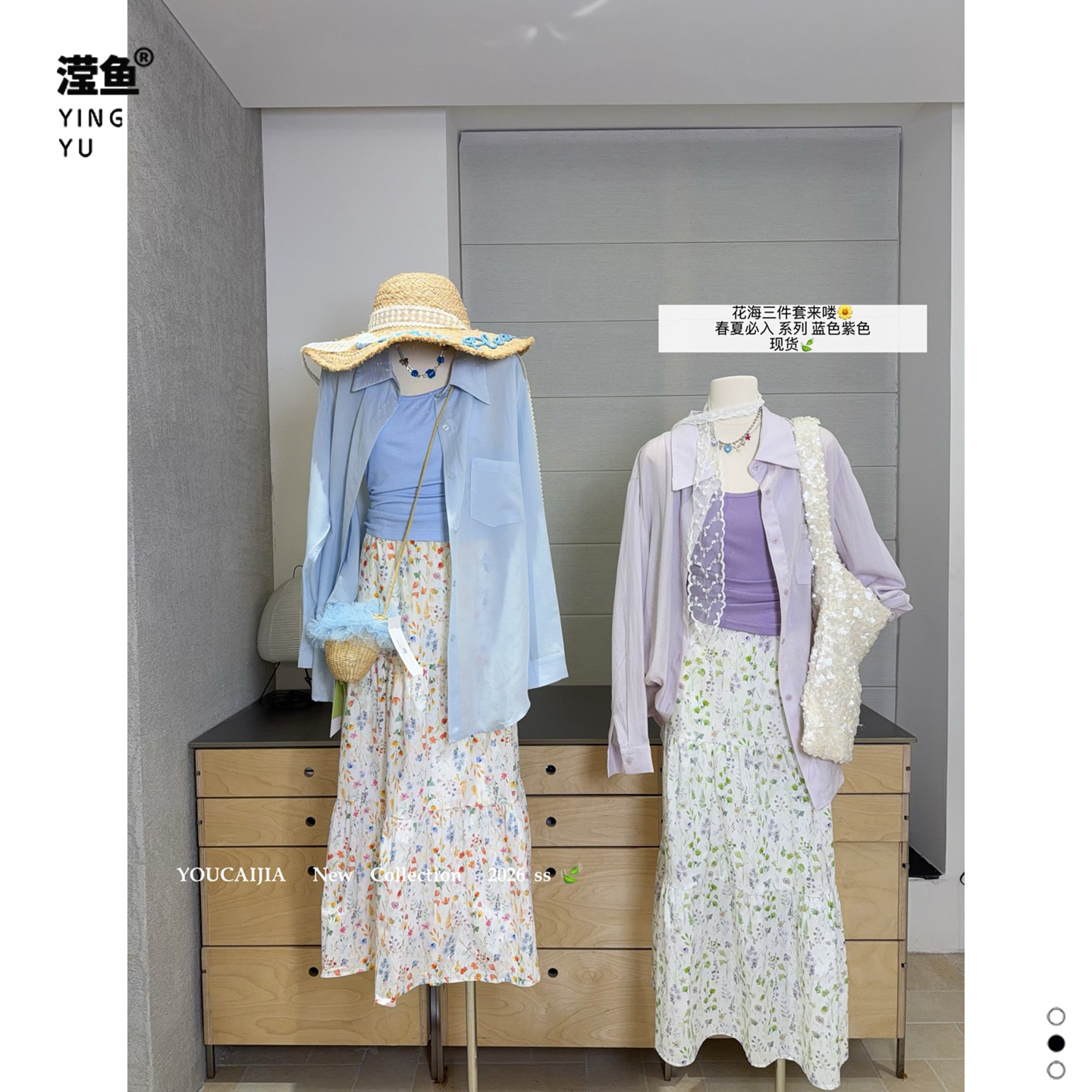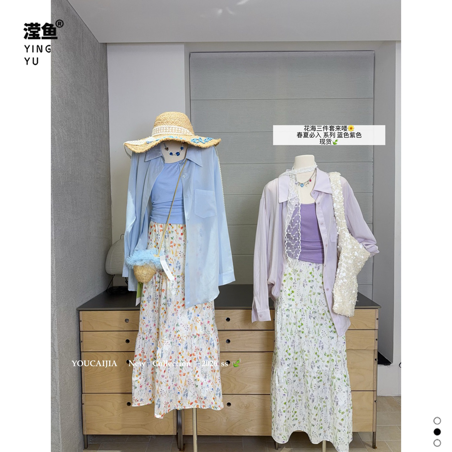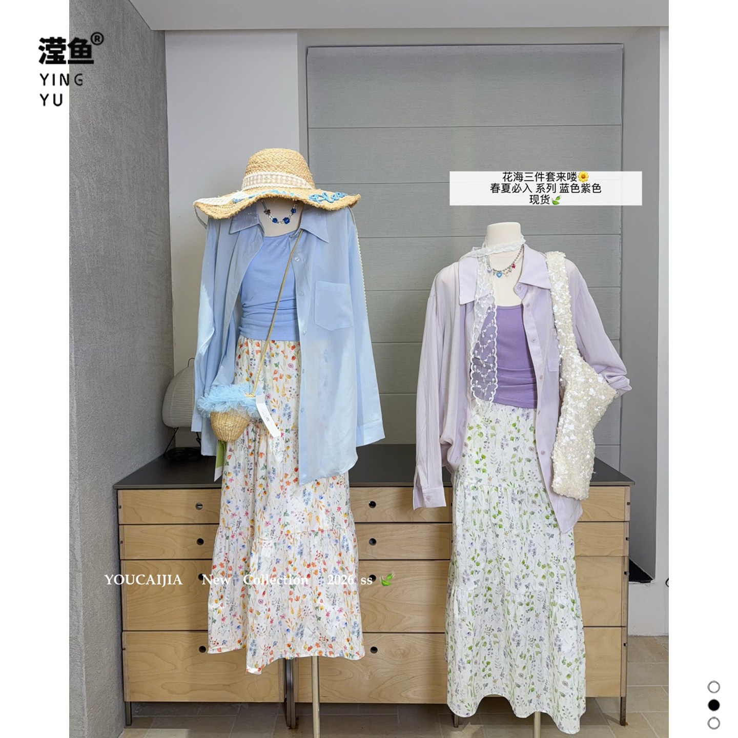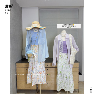春日花仙子碎花A字半身裙女氛围感温柔长裙套装 油菜 YC61095大码