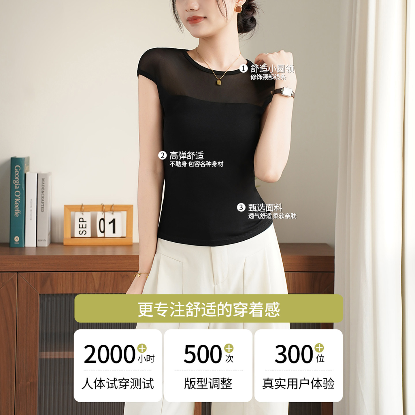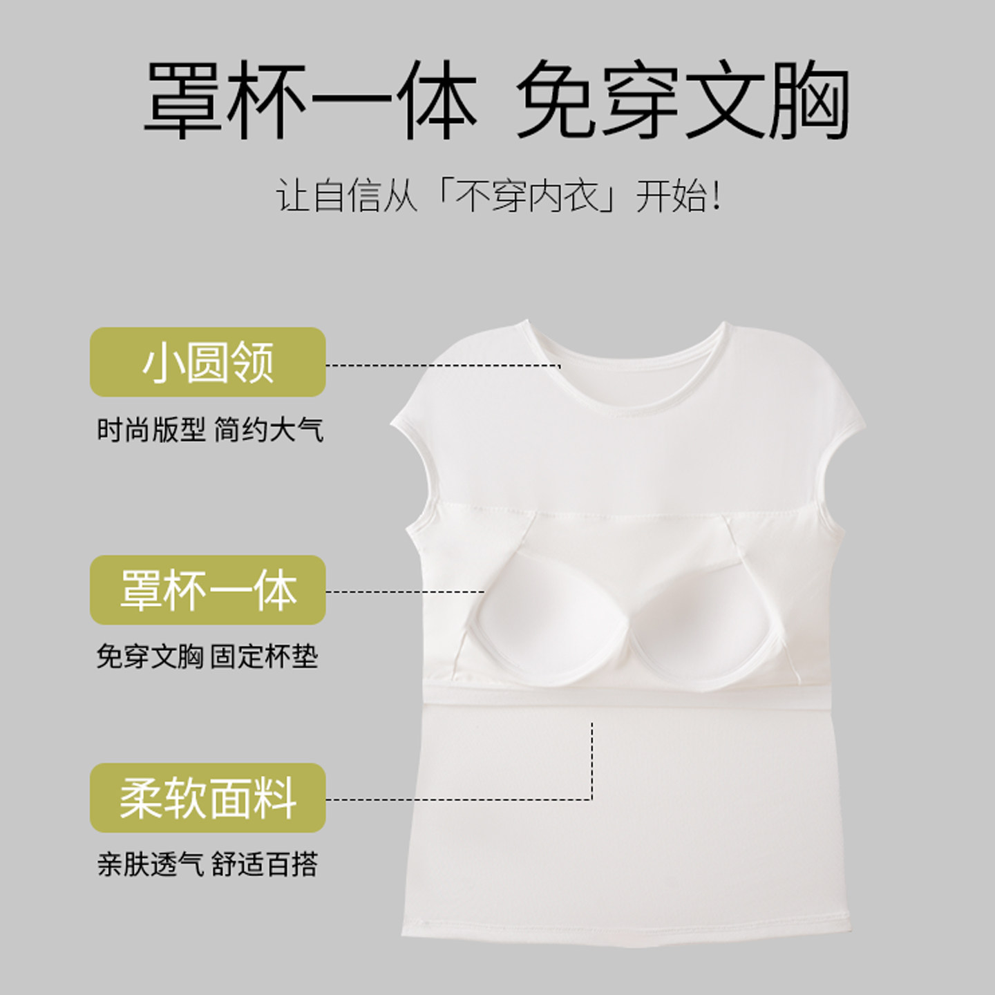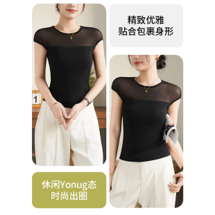 半袖 网纱修身 显瘦自带胸垫免穿文胸上衣短袖 修身 T恤女夏 2026新款
