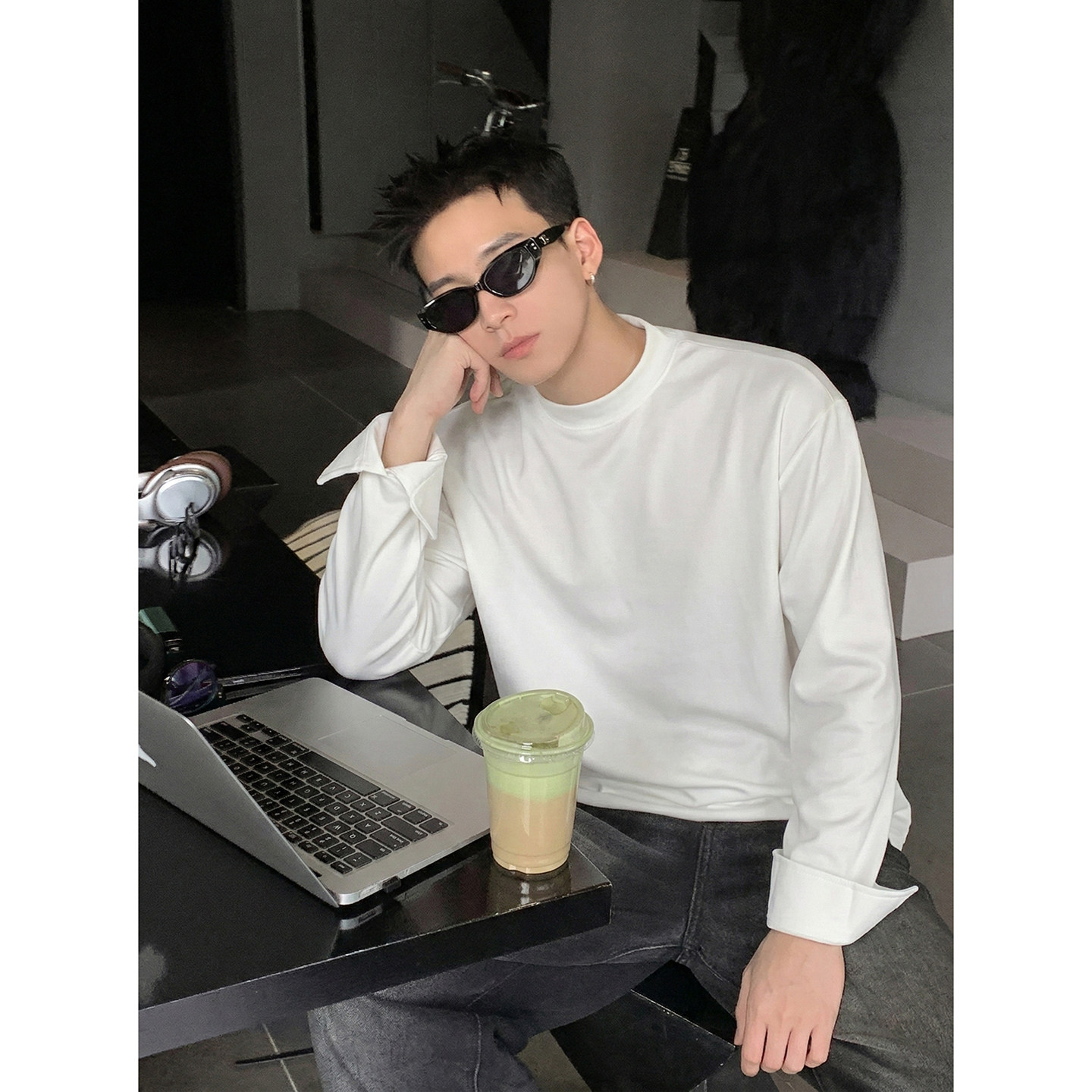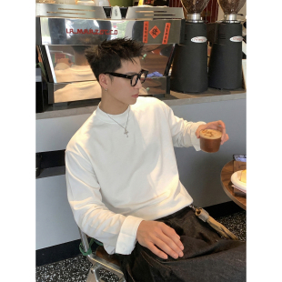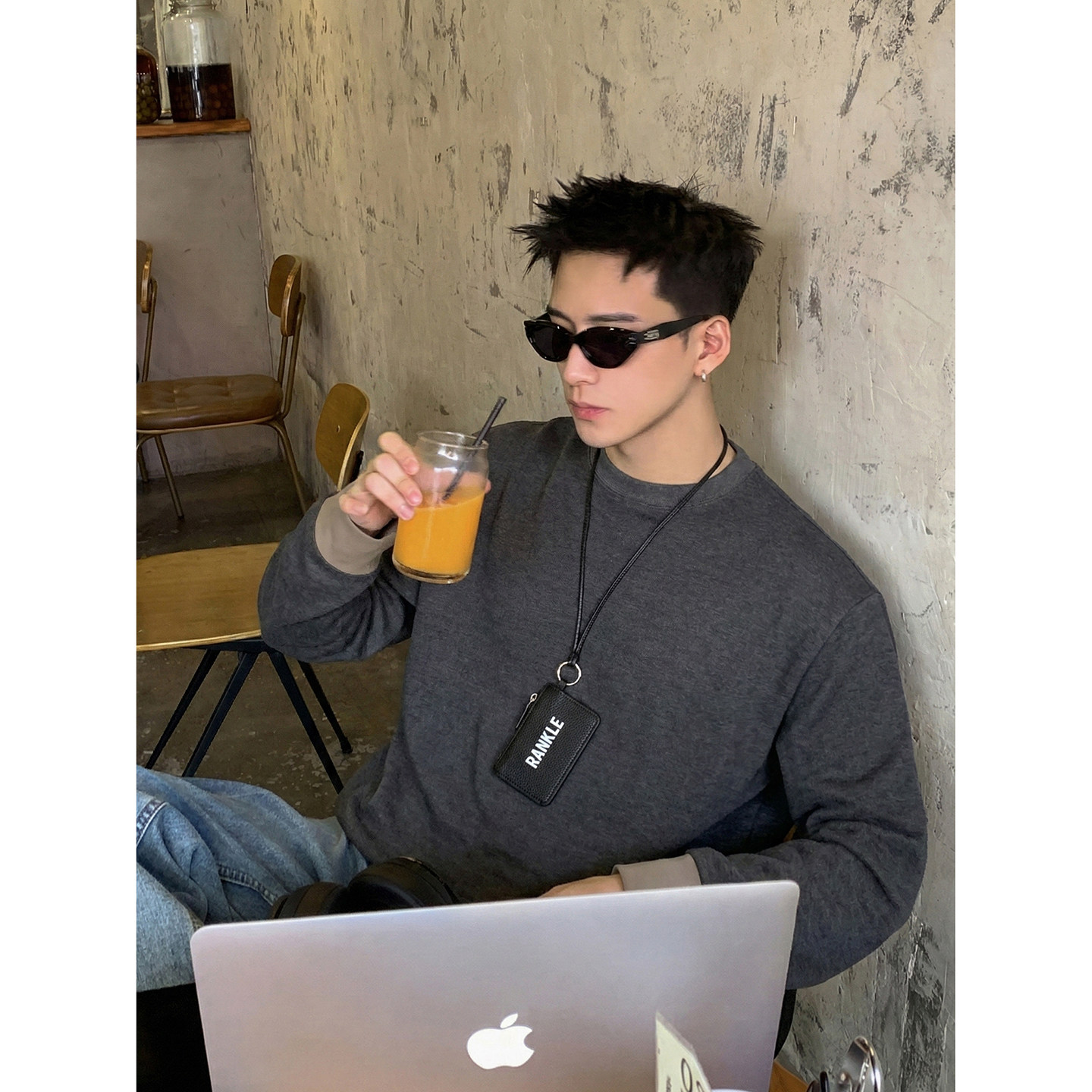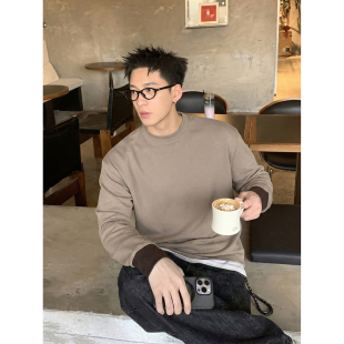口纯色卫衣男宽松落肩春季 街头假两件撞色袖 叠穿上衣潮 美式 PLTH