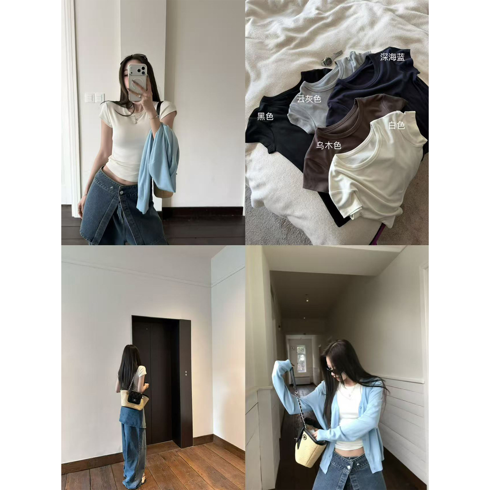 圆领短袖 进口醋酸羊毛呼吸感弹力显瘦直角肩修身 T恤 升级正肩tee