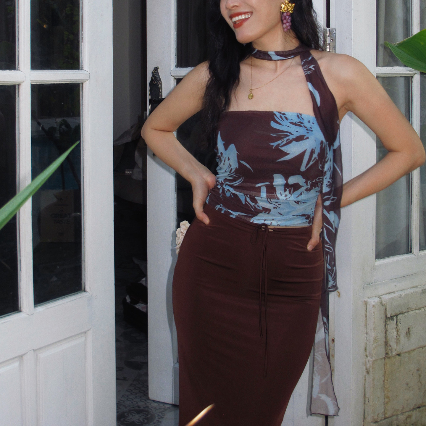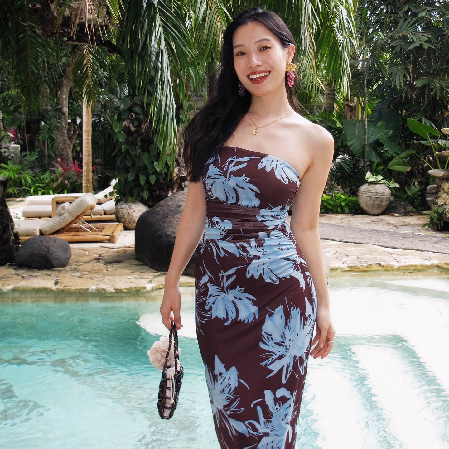 包臀裙 ooh 度假风花朵印花抹胸连衣裙修身 法式 抹胸上衣 itch痒痒