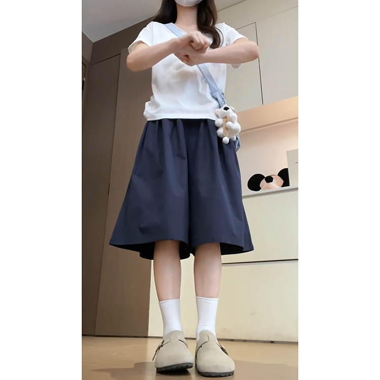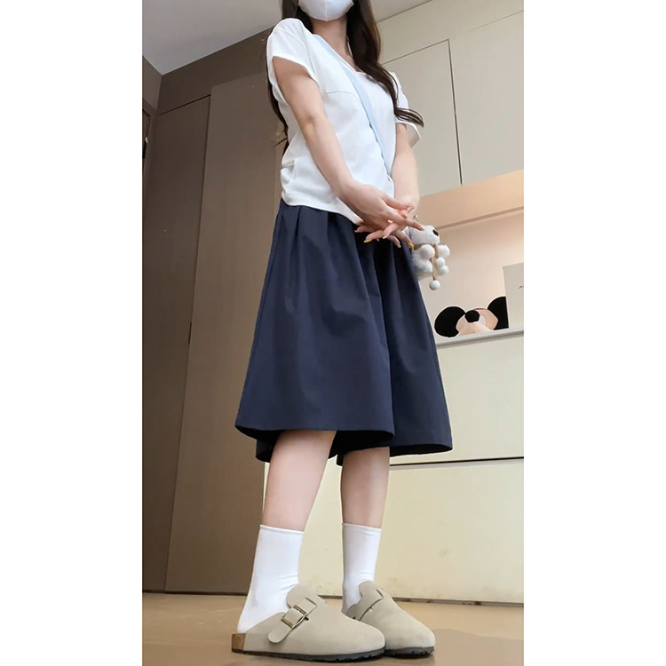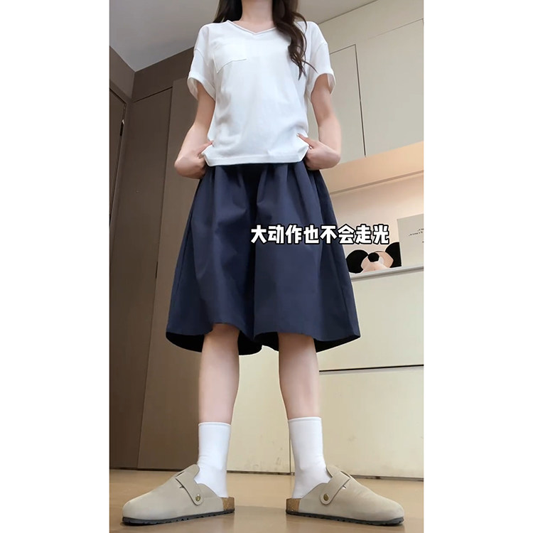显瘦高腰宽松花苞褶皱裙裤 2026新款 女夏季 藏青色慵懒风七分阔腿裤