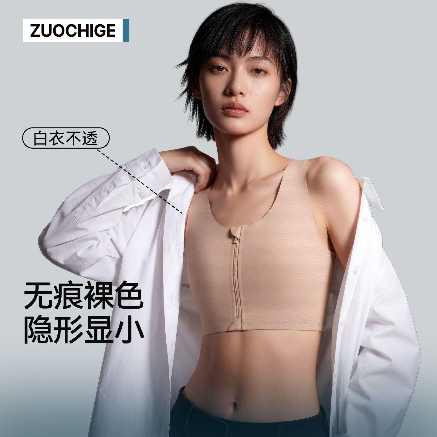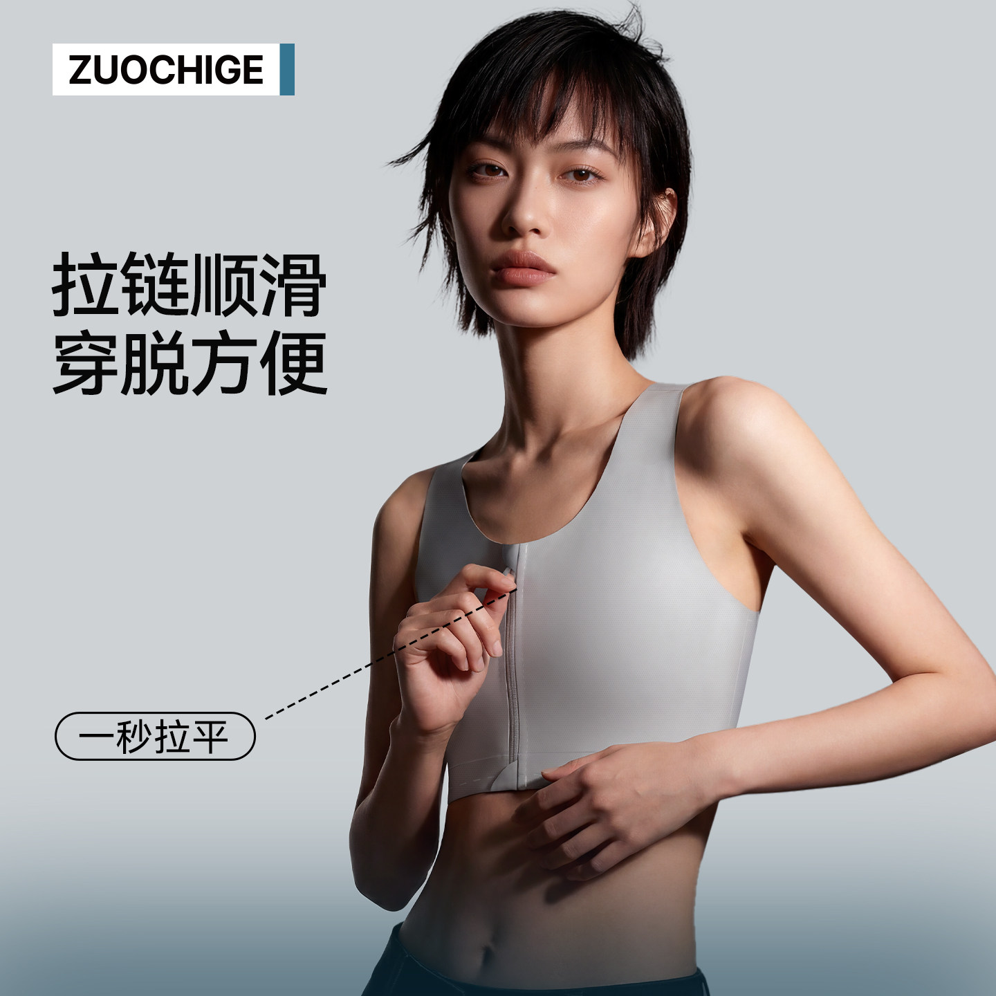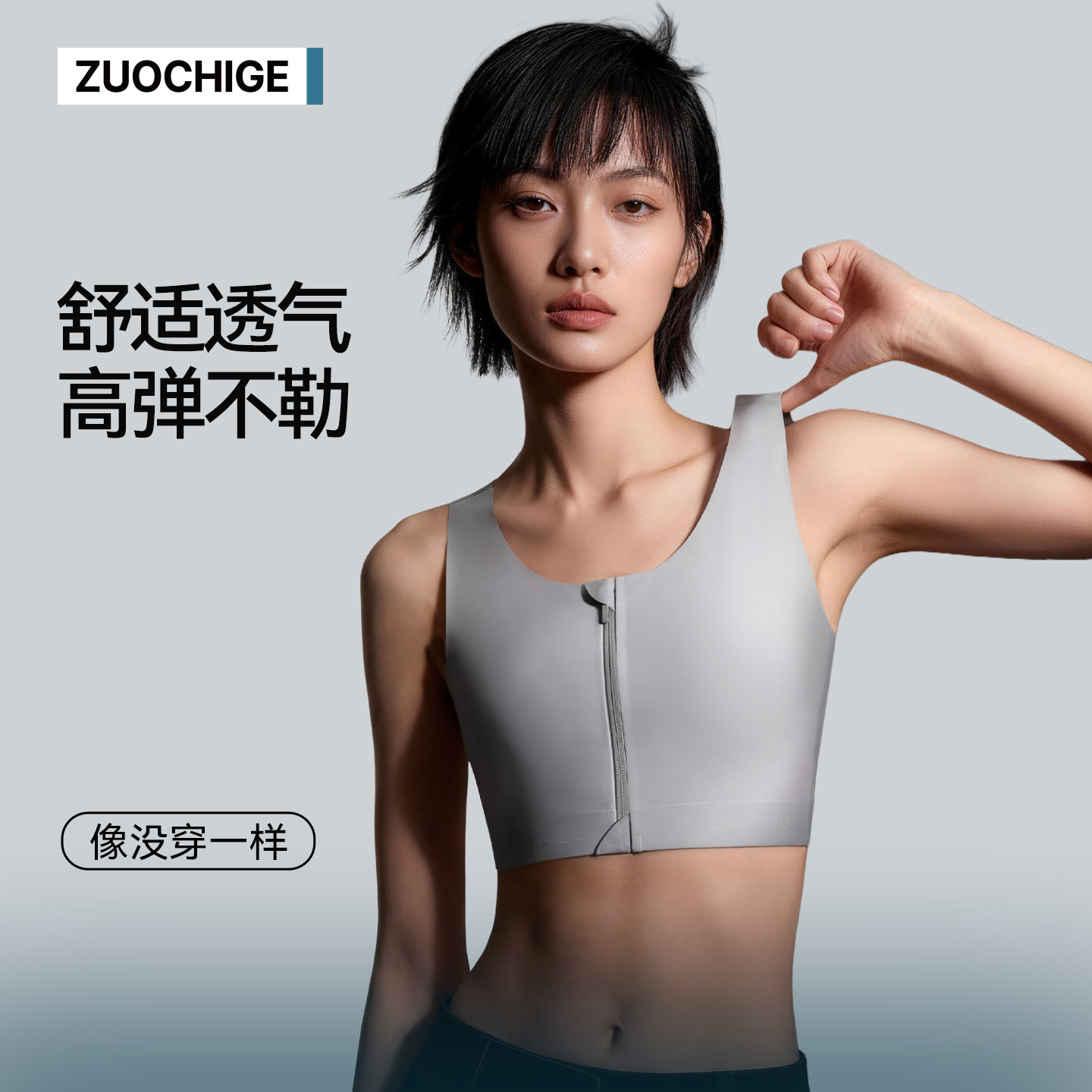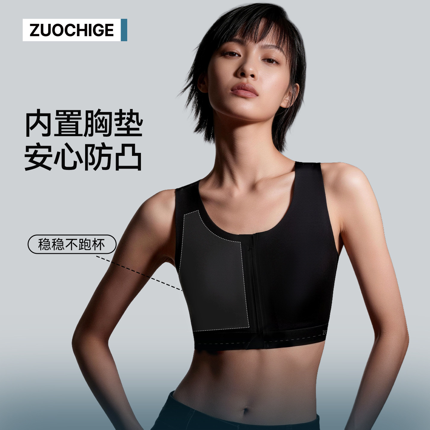 佐驰歌无痕束胸防凸点运动内衣女大胸显小夏季 拉链纸片人背心显瘦