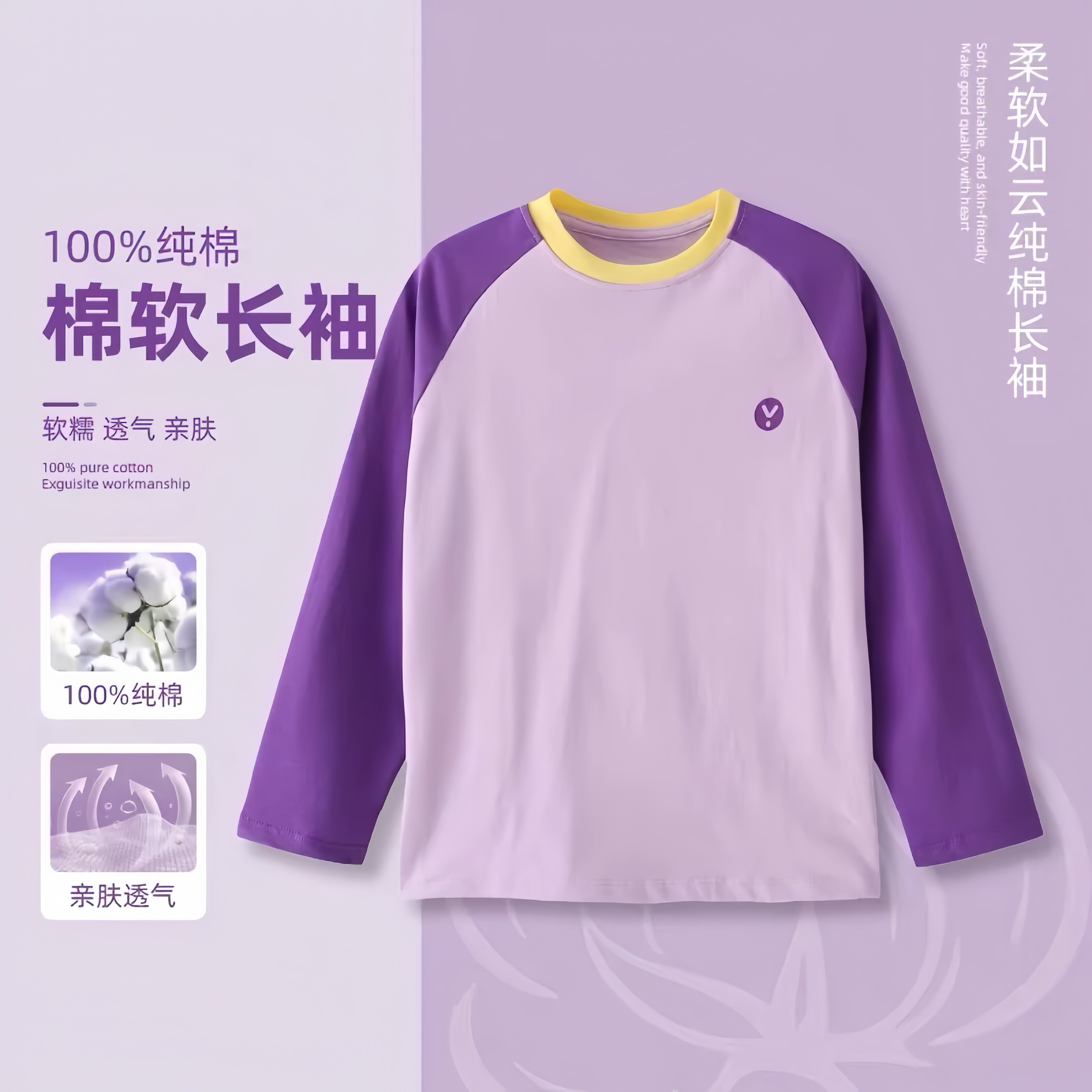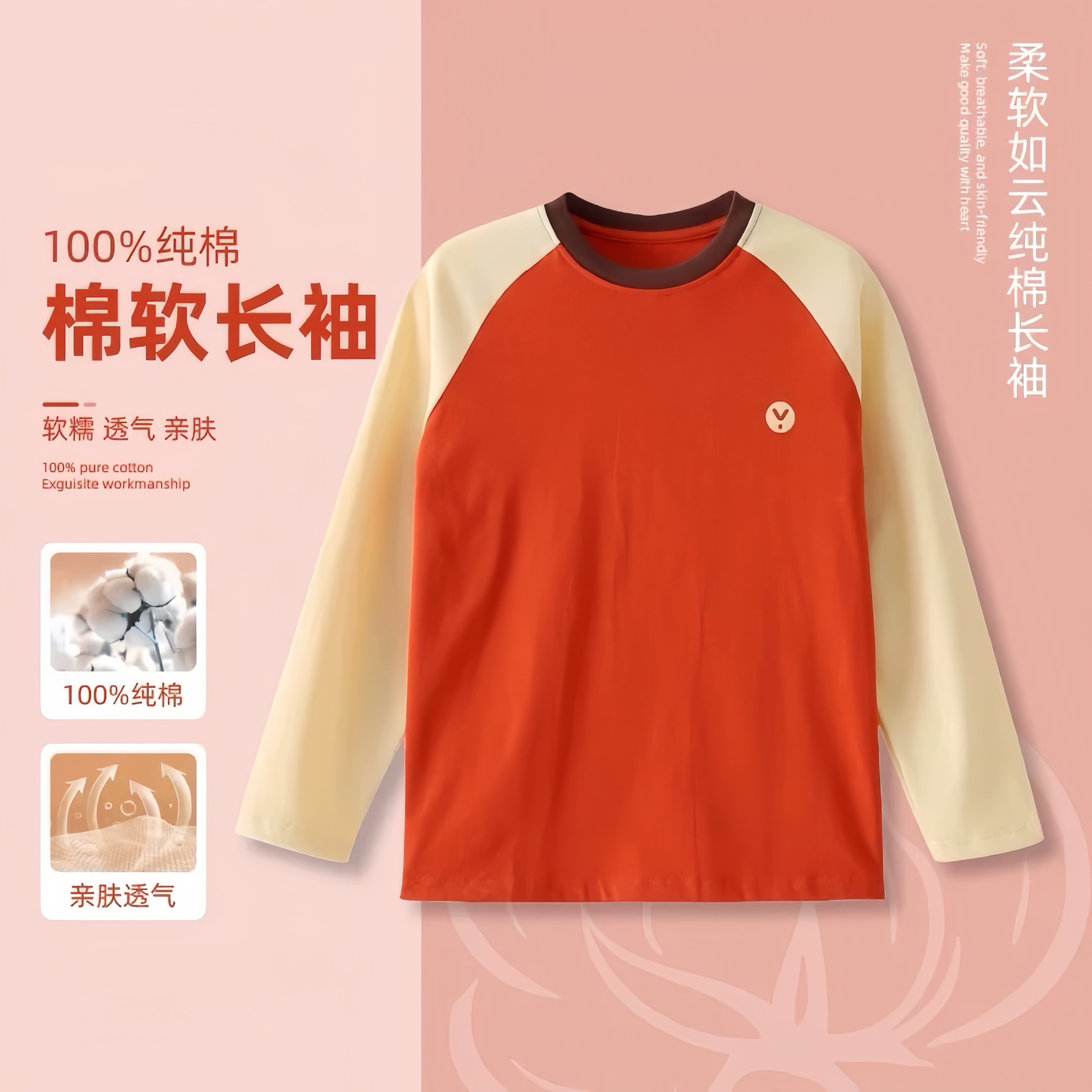 100棉打底2026新男童T恤女童拼色春节打底衫 品牌订单尾货