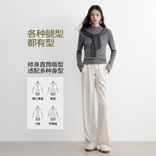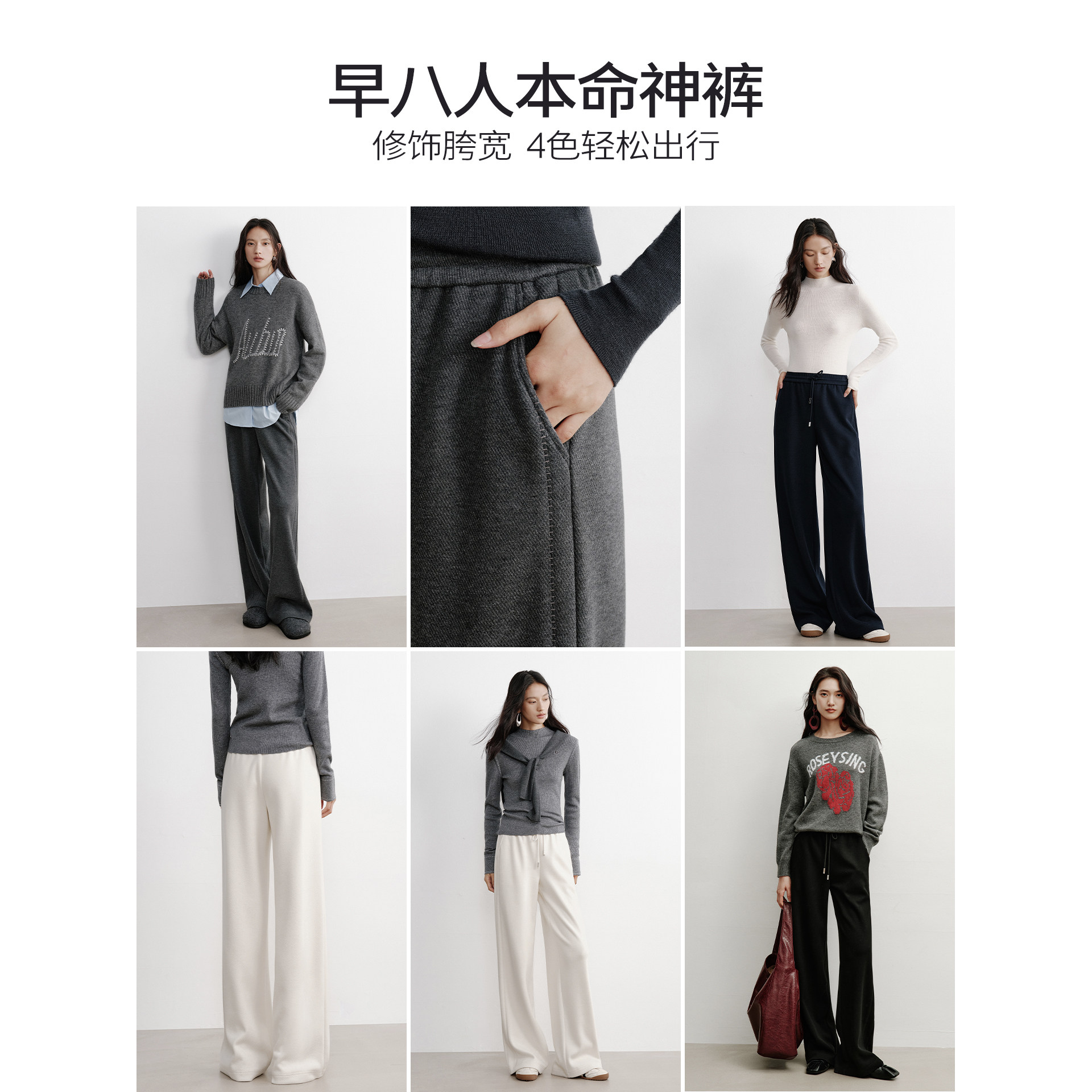 浅色糯米休闲裤 子 女秋冬加绒胖妹妹mm高腰宽松显瘦梨型身材阔腿裤