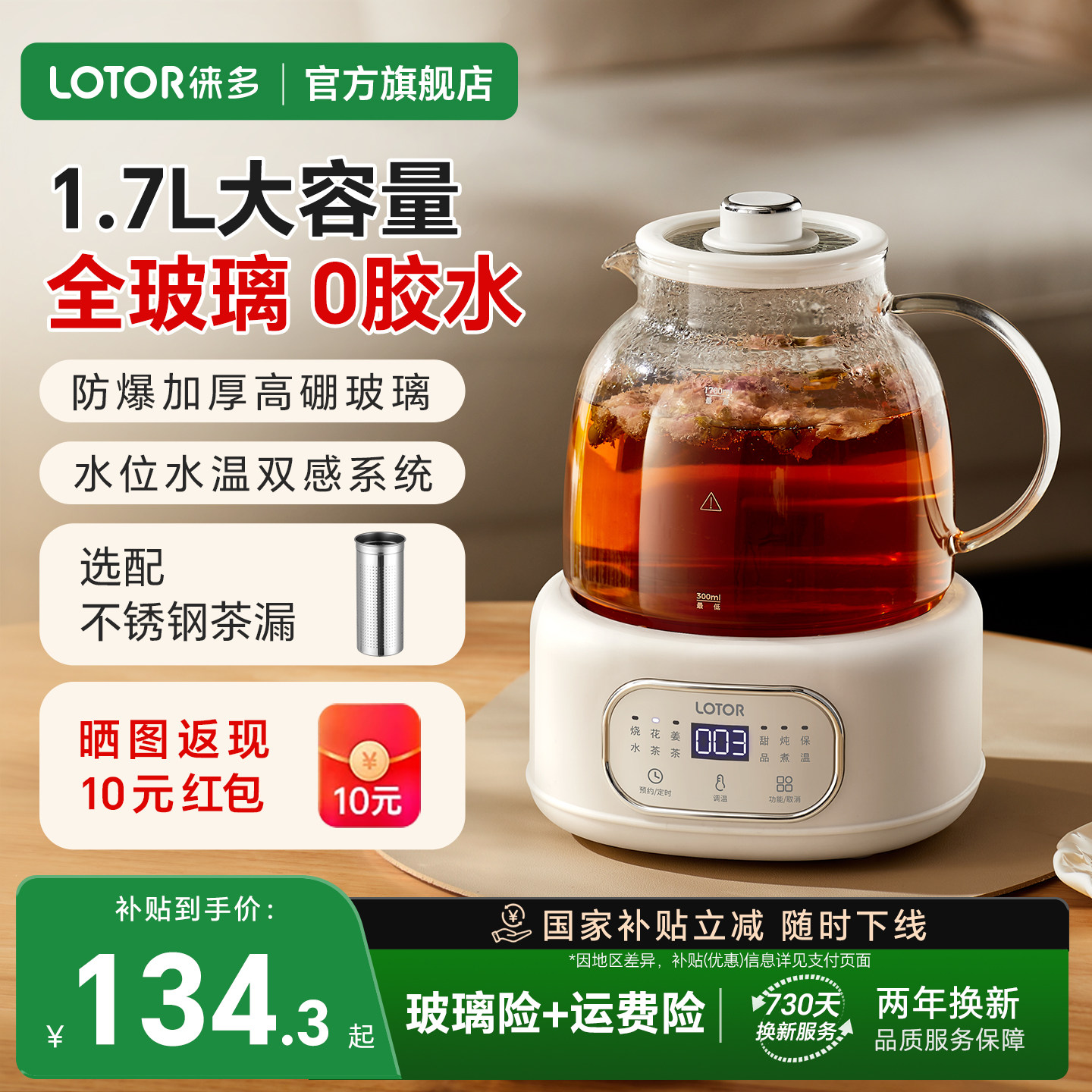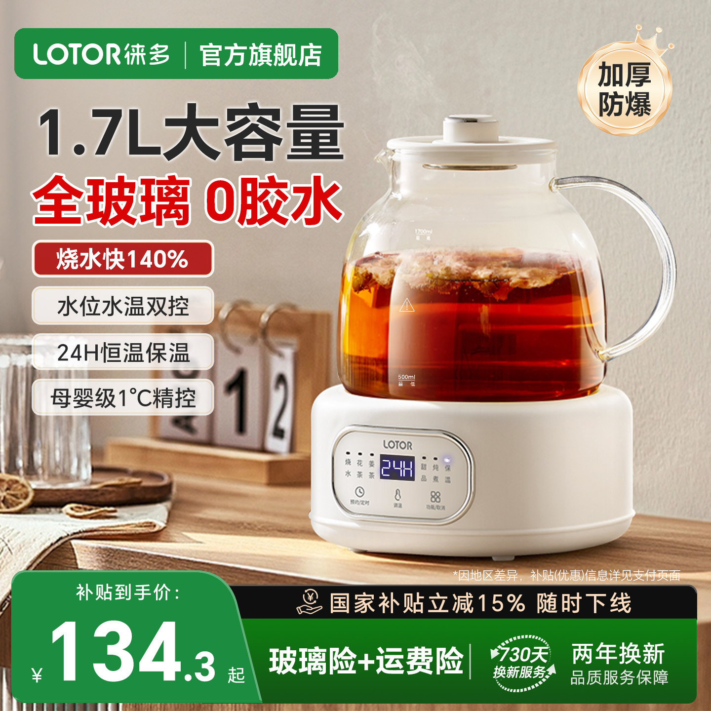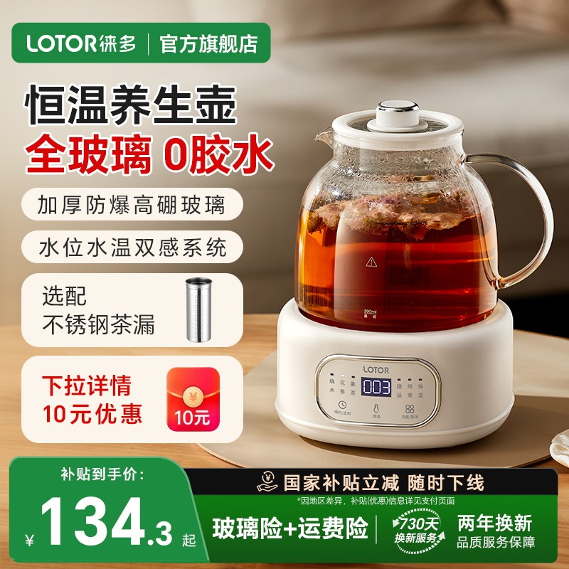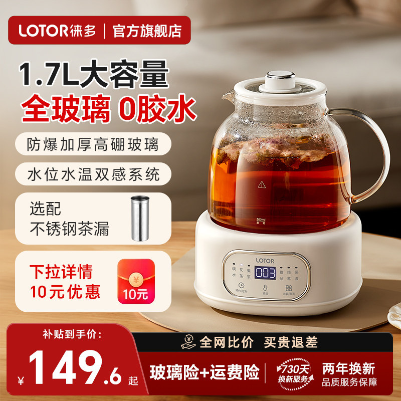 lotor徕多全玻璃养生壶大容量炖煮一体2025新款 烧水煮茶壶纯玻璃