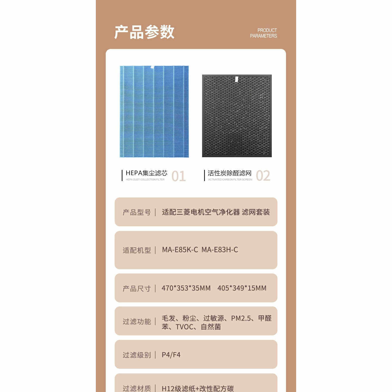 W高效复合除甲醛雾霾 适配三菱电机空气净化器滤网芯MA E85K
