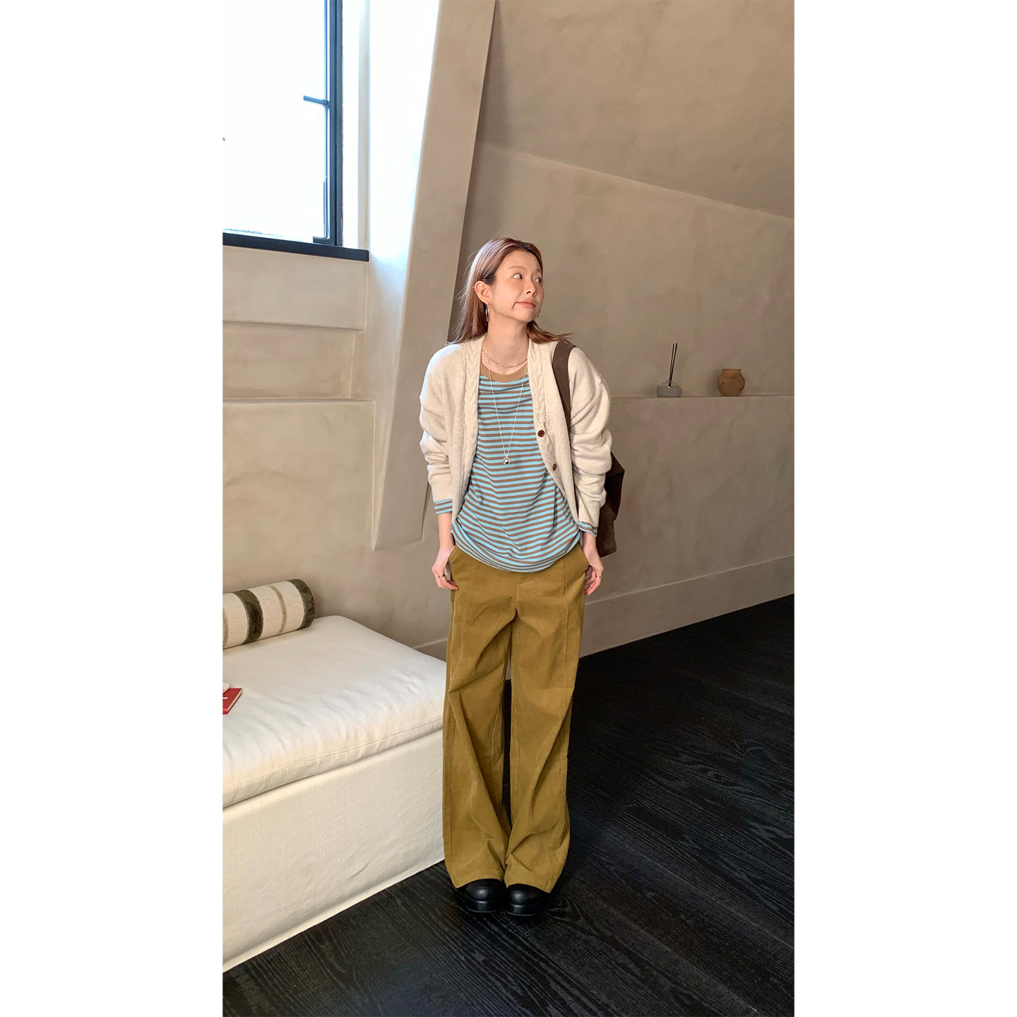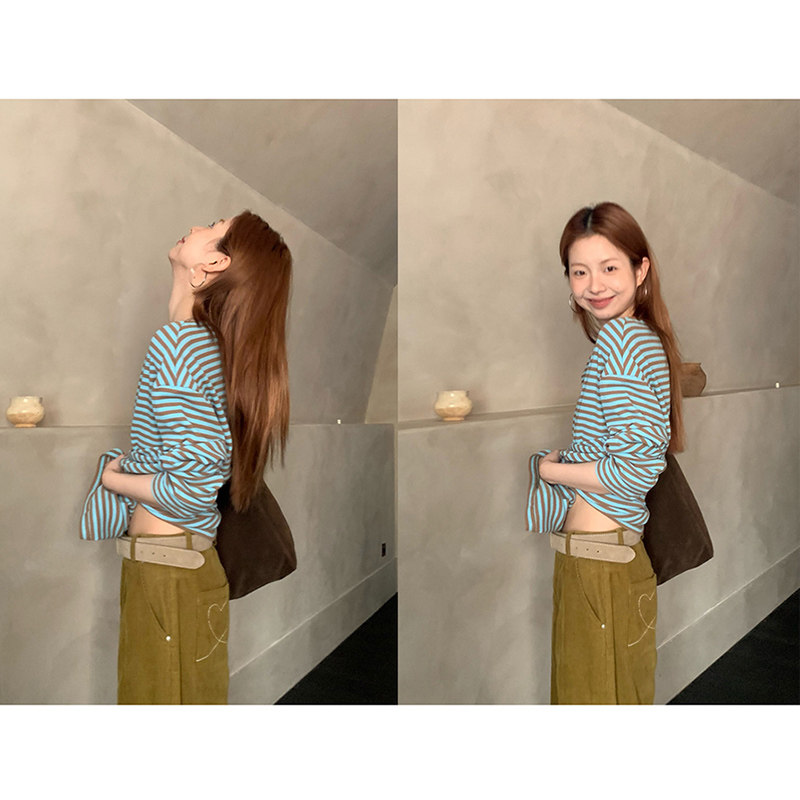 款 新款 打底内搭外穿上衣女 2026春季 CCKOK华夫格拼色条纹宽松长袖