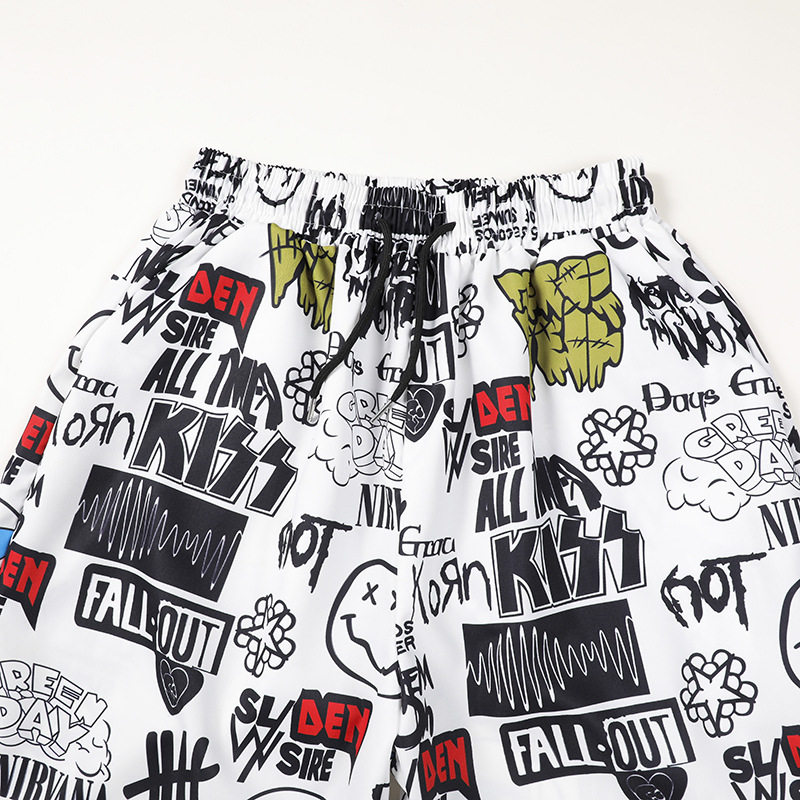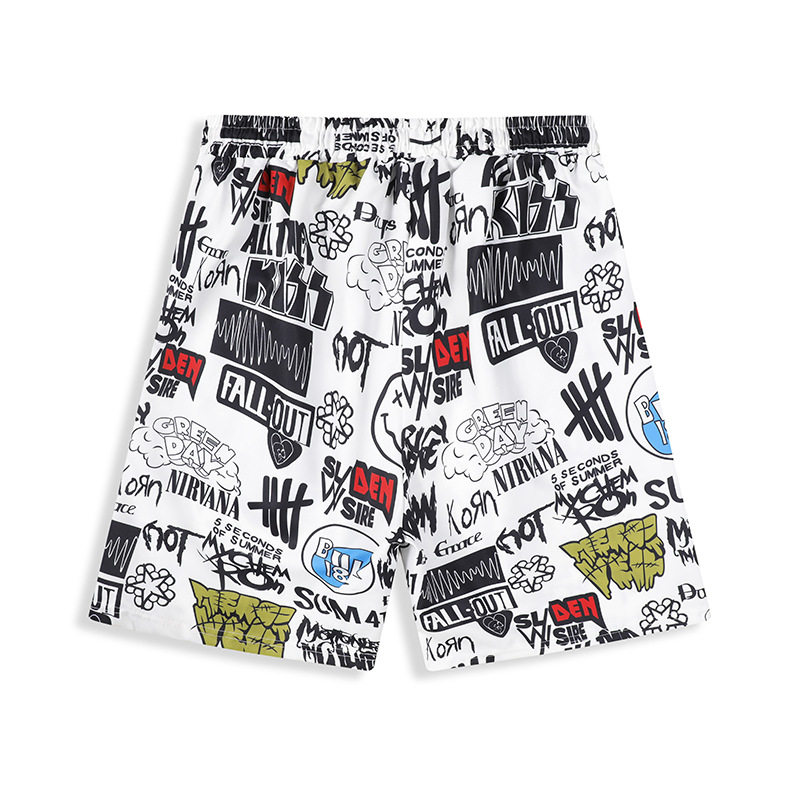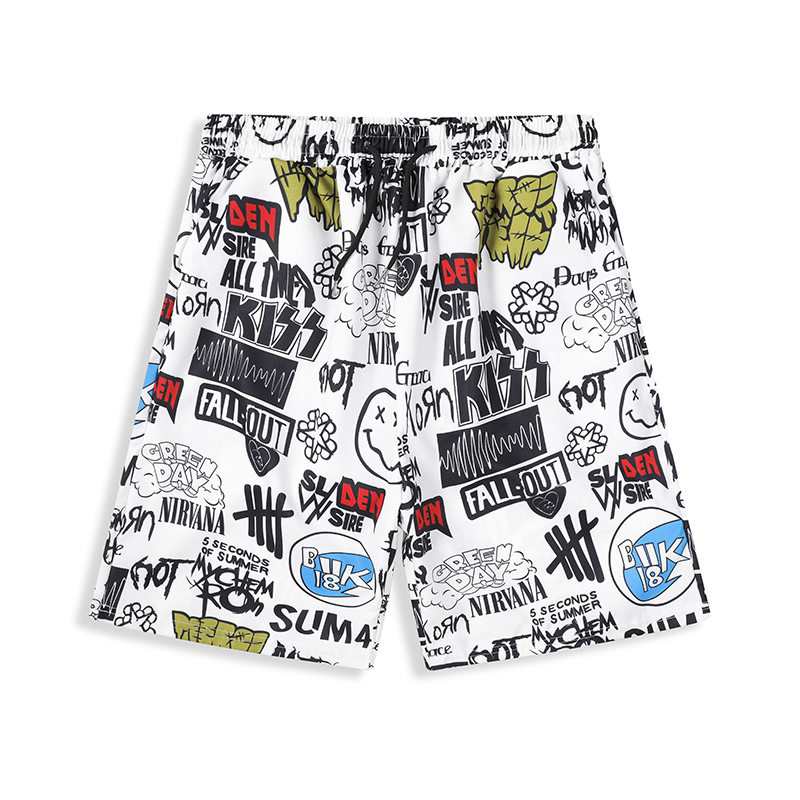 子男青少年直筒沙滩大 冰丝凉感休闲五分裤 痞帅印花短裤 男夏季