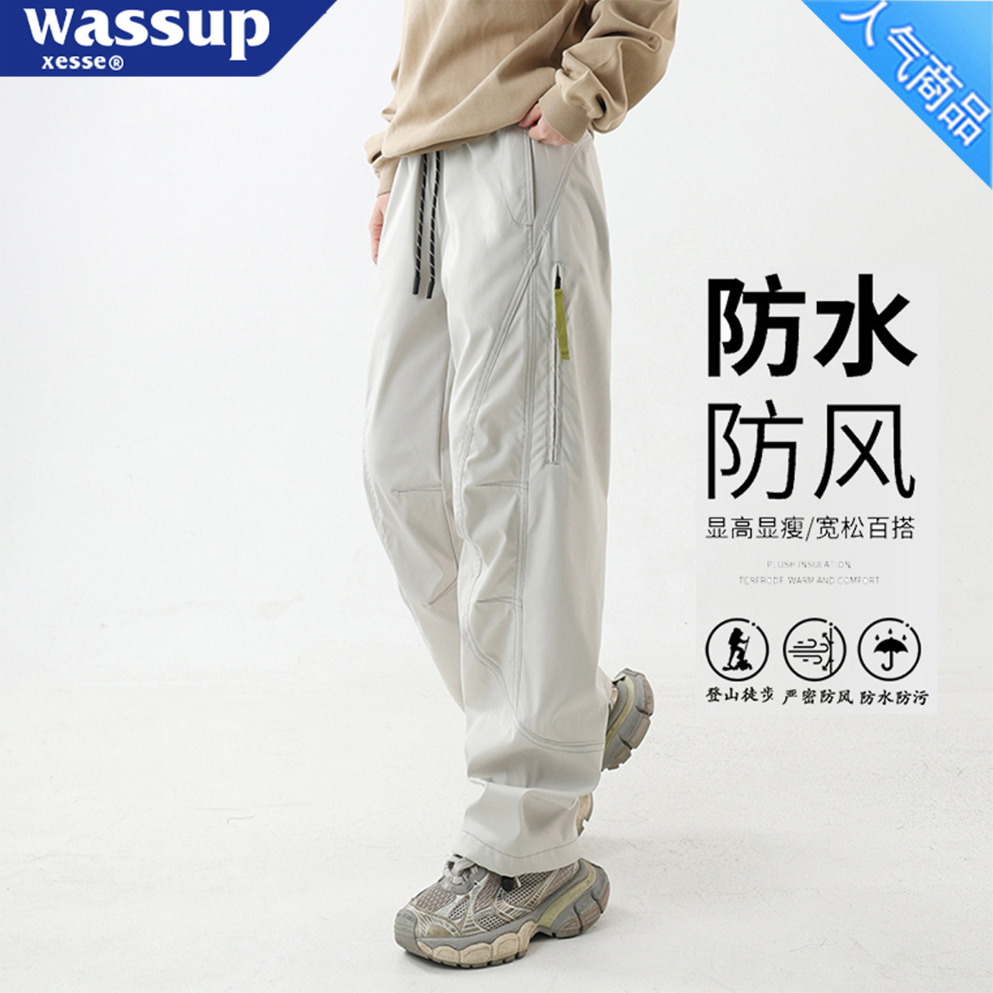 XESSE户外冲锋裤 裤 女款 防水速干工装 男 宽松直筒运动登山裤 WASSUP