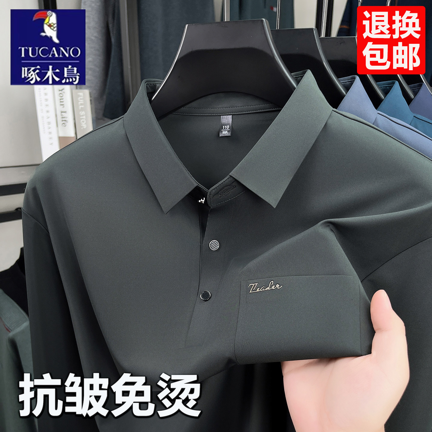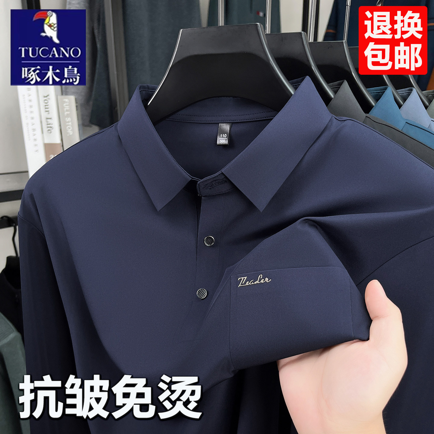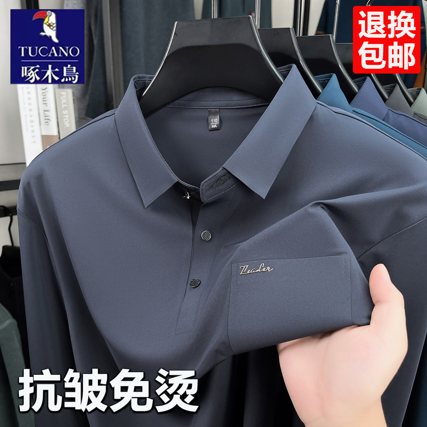 长袖 POLOWALK男士 polo衫 秋冬新款 t恤男款 商务纯色长袖 7A抗菌