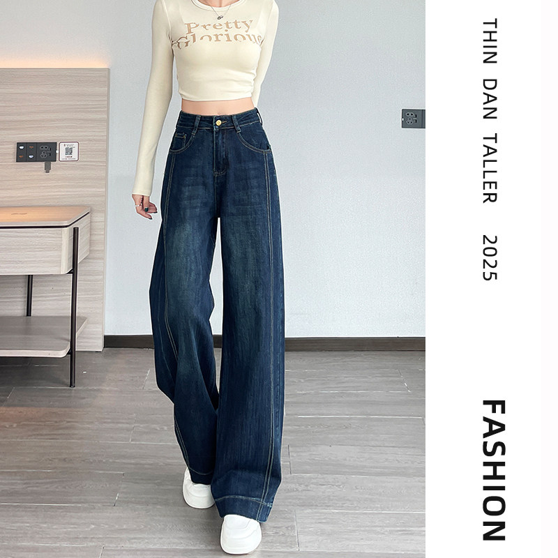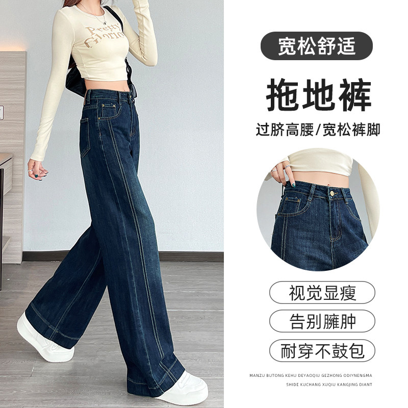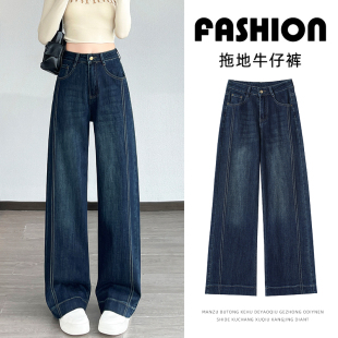 阔腿裤 高个子170窄版 显瘦拖地 女加长2025春秋新款 高腰直筒牛仔裤