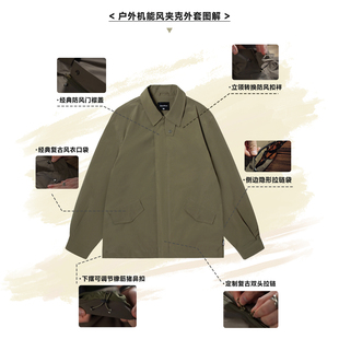 宽松休闲翻领外套潮 夹克男士 嘿马七作日系复古秋季 户外机能风工装