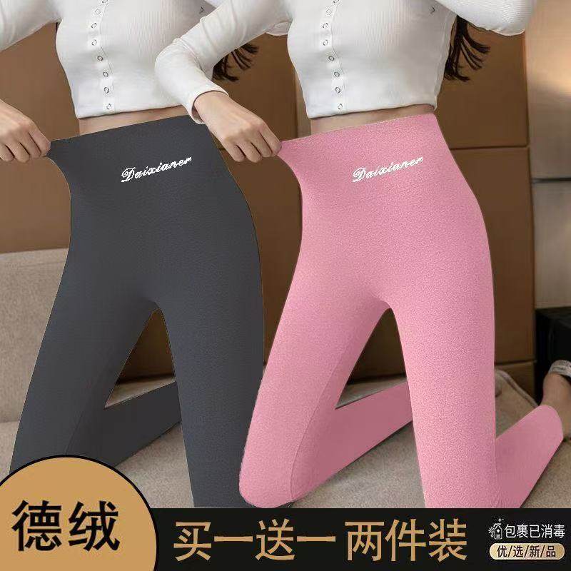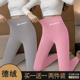 女秋冬季 德绒秋裤 高腰加绒打底裤 发热大码 单 紧身保暖裤 两件装